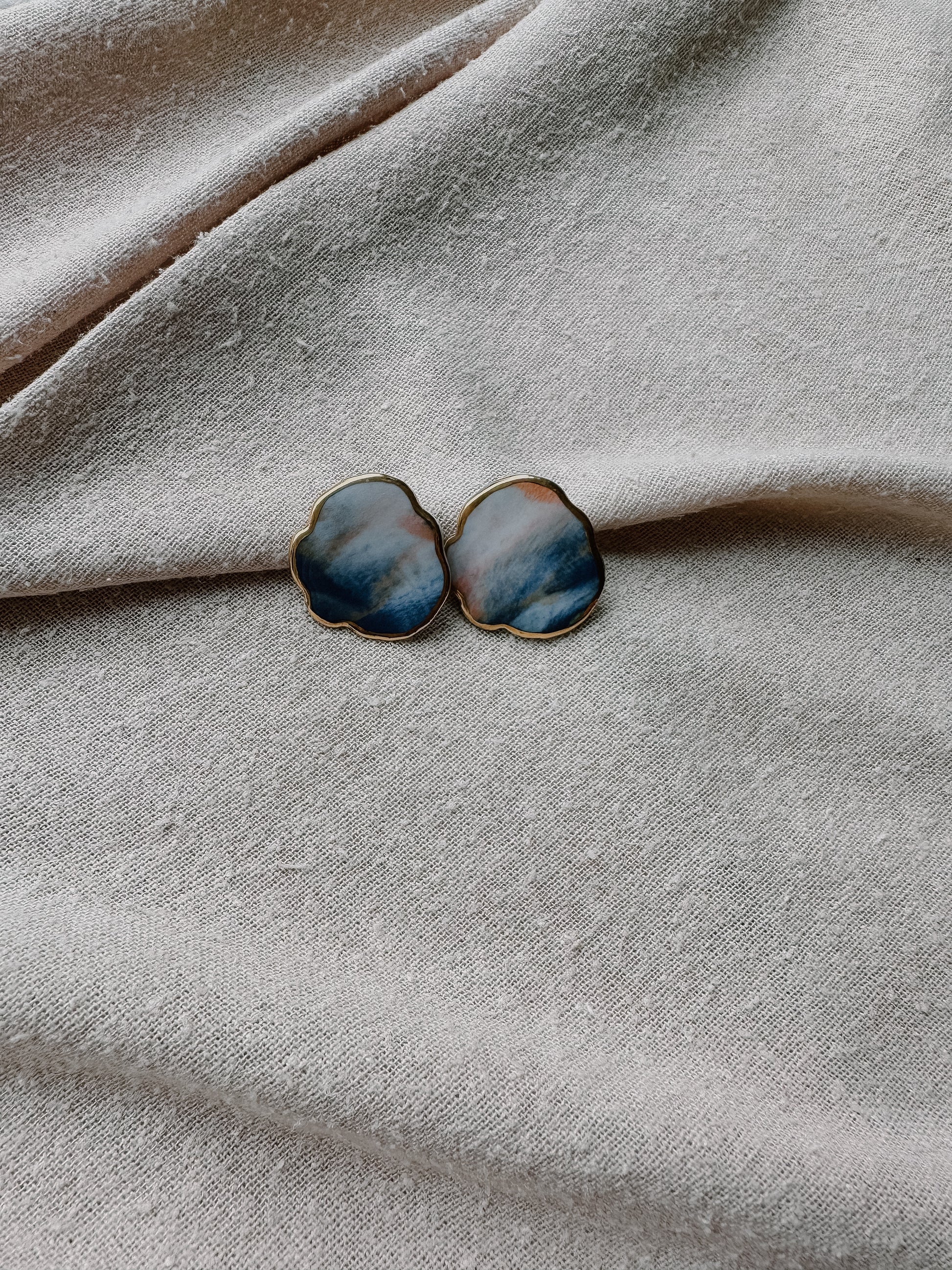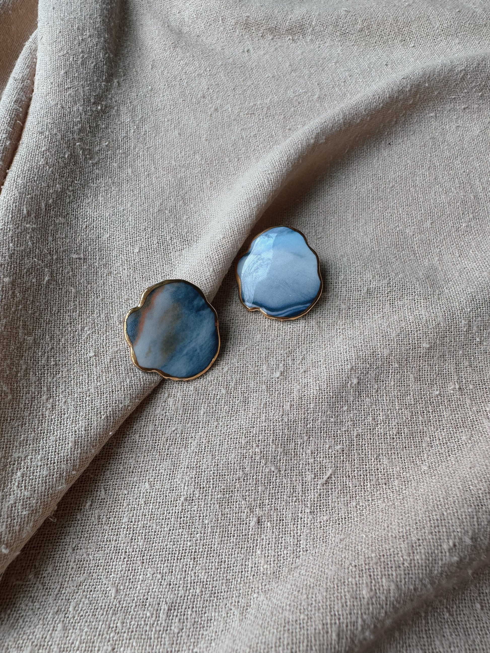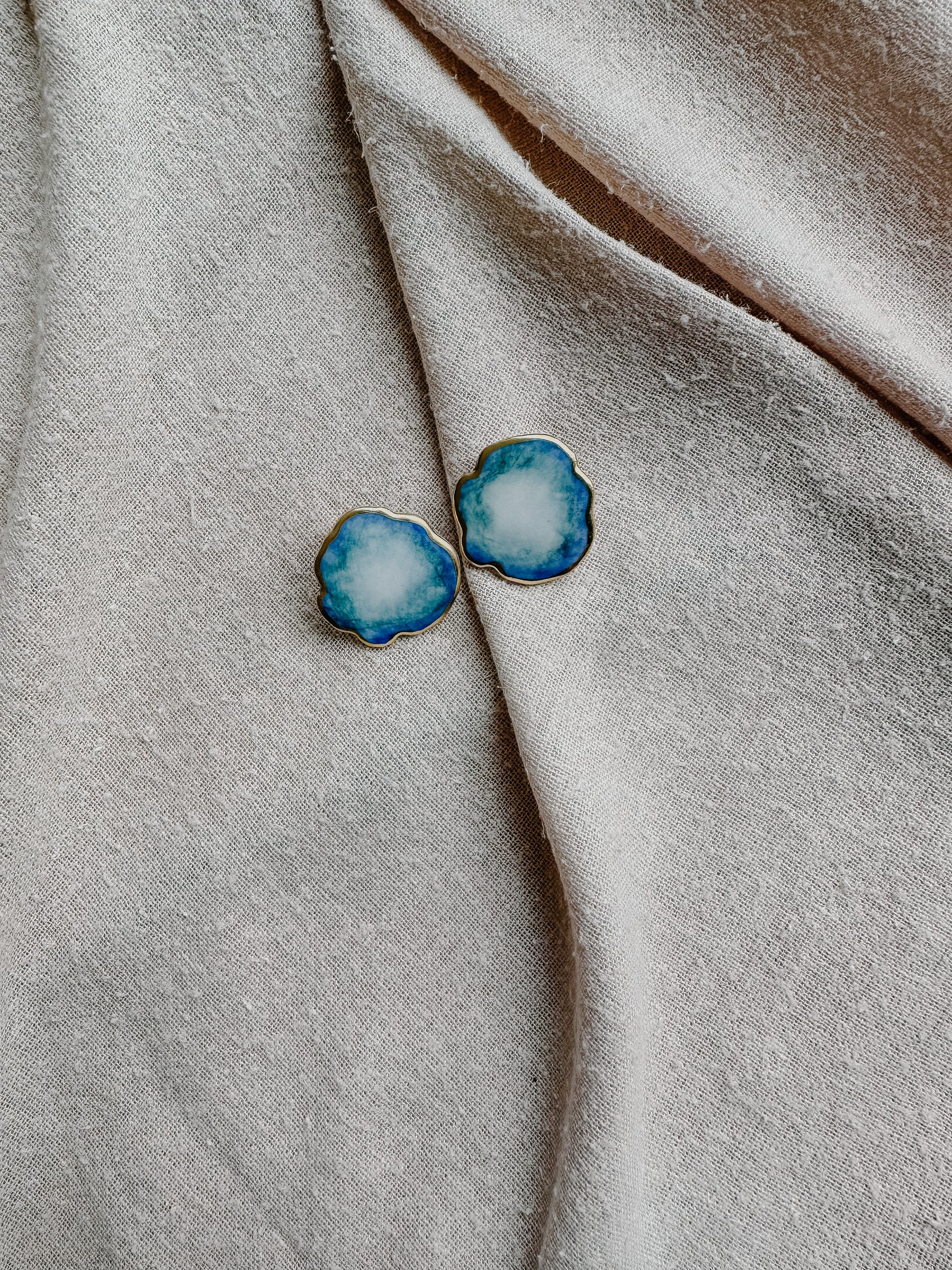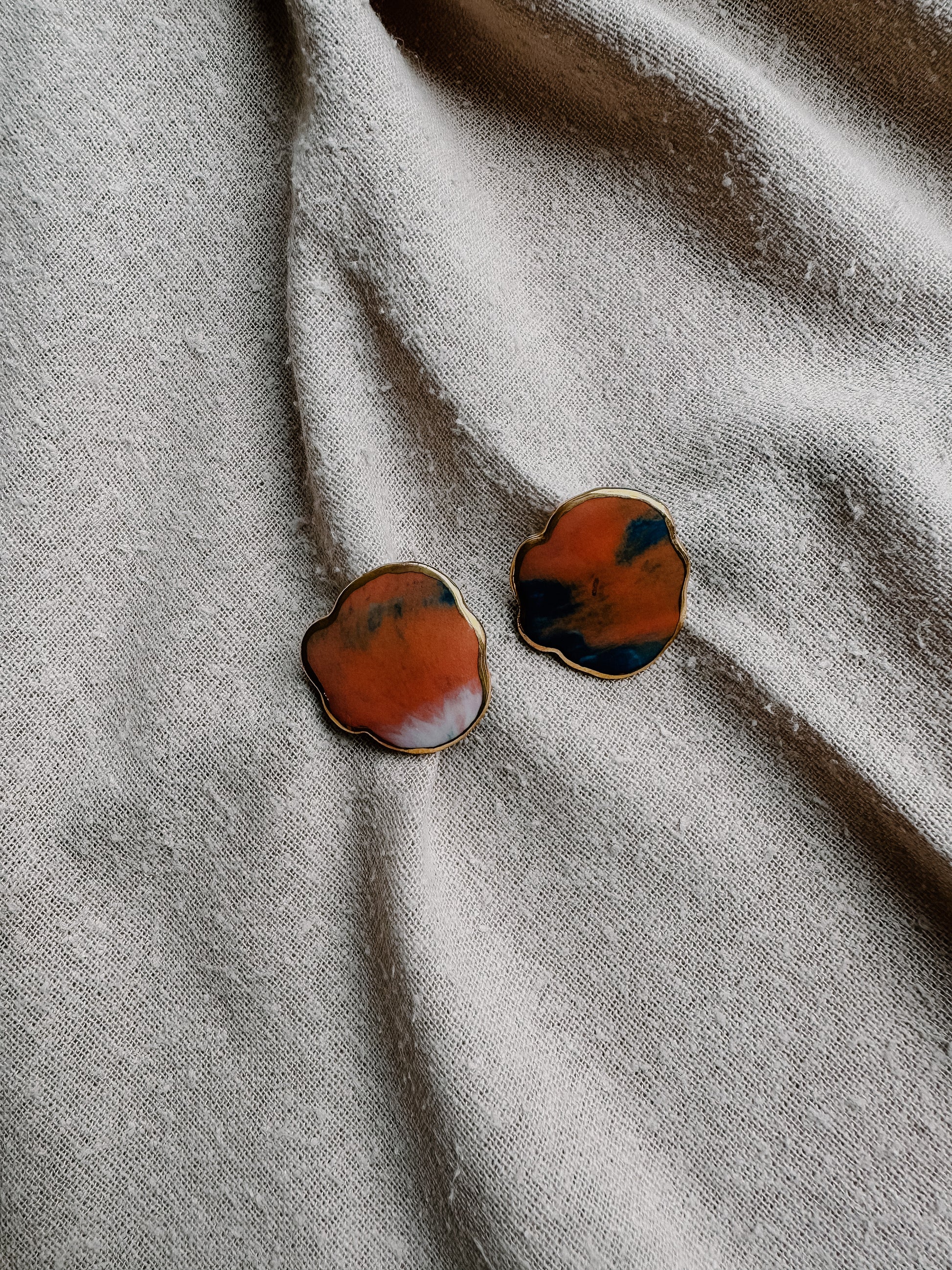 Diana Cojocaru’s statement earrings are hand-sculpted in porcelain, hand-painted using ceramic watercolors, fired in the kiln, and detailed with 24k gold or platinum. Earring post and clutch are made from sterling silver. Each piece is light and comfortable to wear.