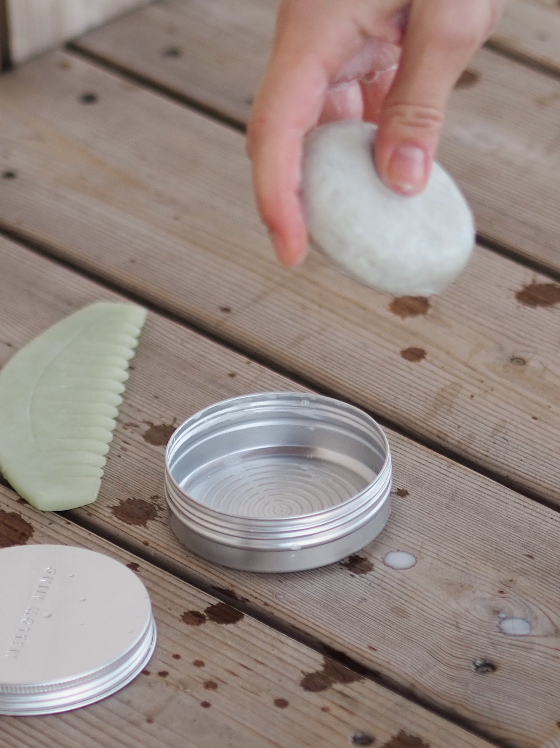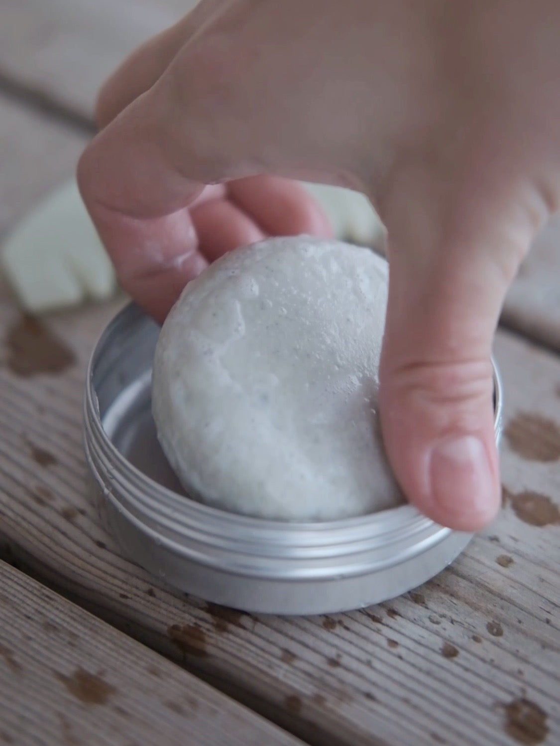 This shampoo bar smells fresh, yet subtle. The peppermint and tea tree oil, with their refreshing and cooling properties, stimulate blood circulation and are antibacterial. For reference, this shampoo bar lasts about 6 months with weekly washes on long hair. Leftovers can be mixed with water for a more liquid consistency and so used up to the last crumb.