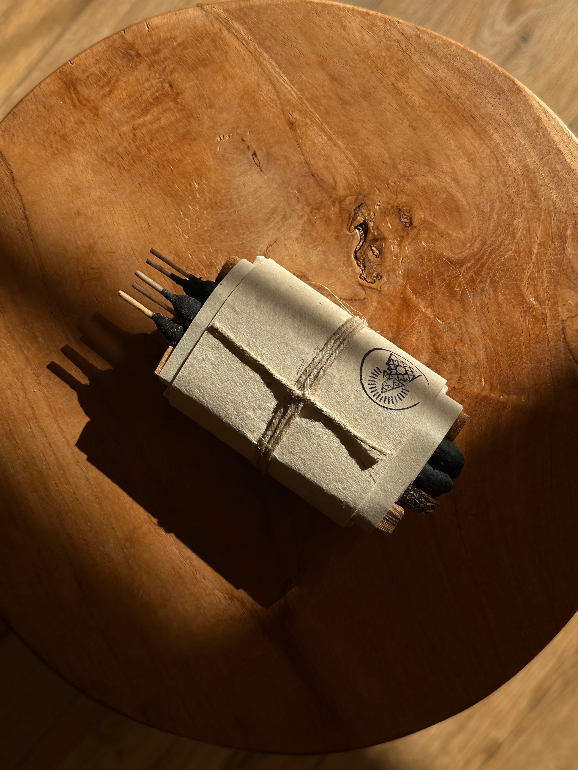 use: matches or a candle to light the incense sticks, then blow out the flame and allow the smoke to disperse inside the space.
