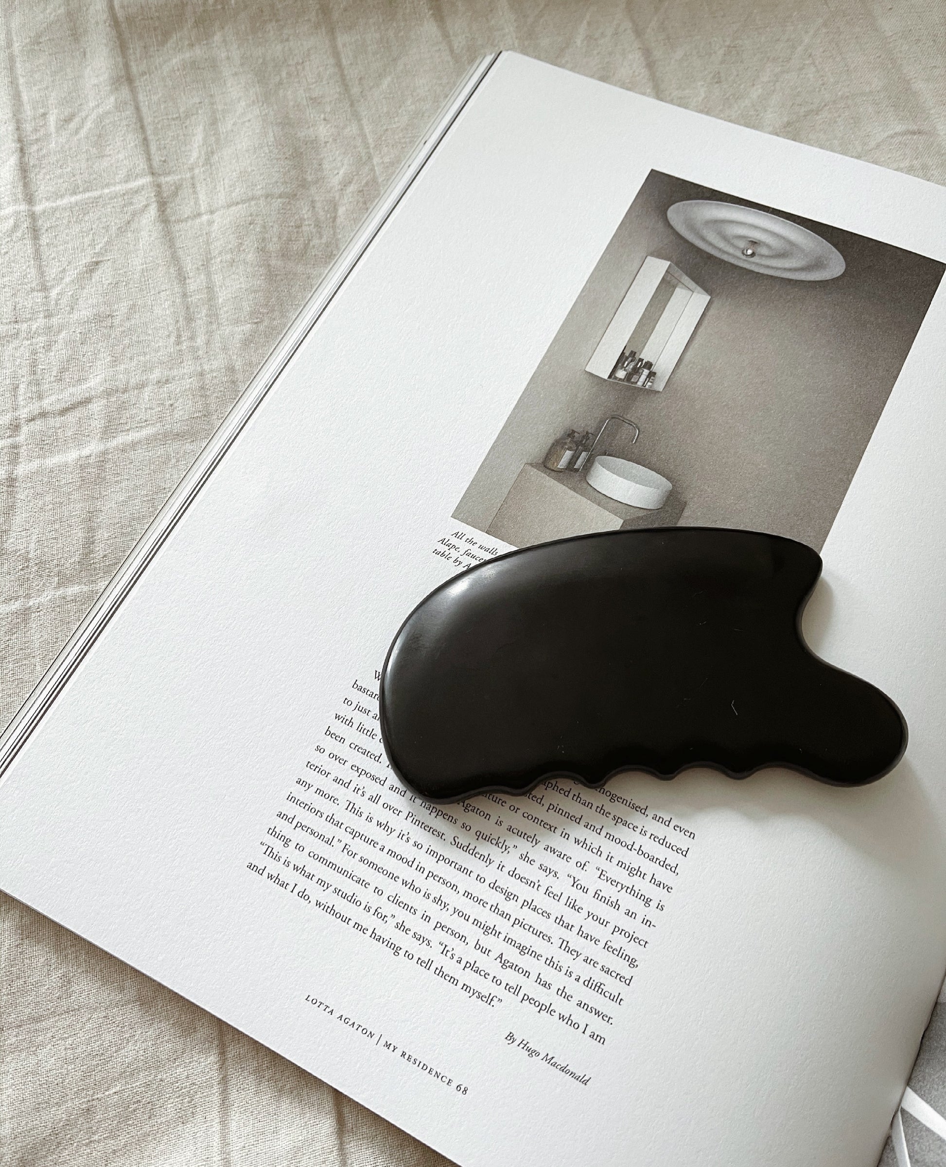 Care: clean your gua sha with neutral soap and warm water after every use to avoid the spread of bacteria. It can break if you drop it, so you may wish to store it in the fabric bag that it comes in.