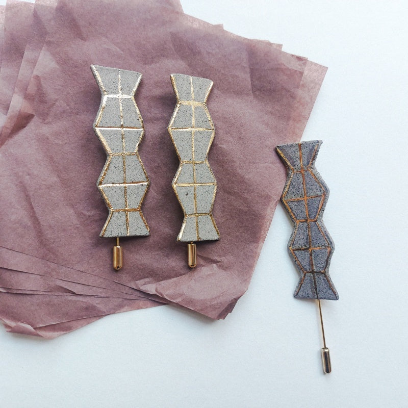 The Brâncuși pins are shaped and painted by hand. Each object is uniquely made, which means textures, shapes, and color shades may vary.