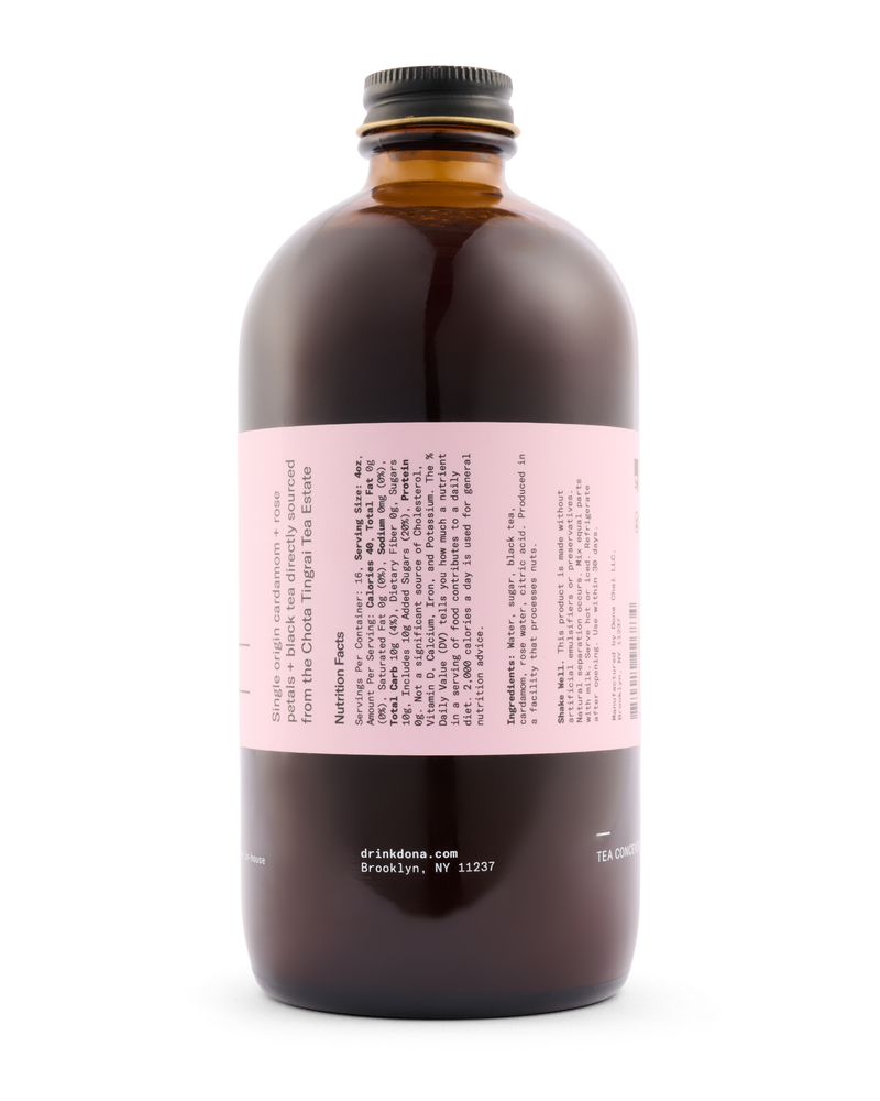 Single origin cardamom, pure rose, and black tea directly sourced from the Chota Tingrai Tea Estate for a Cardamom Rose Tea Latte.