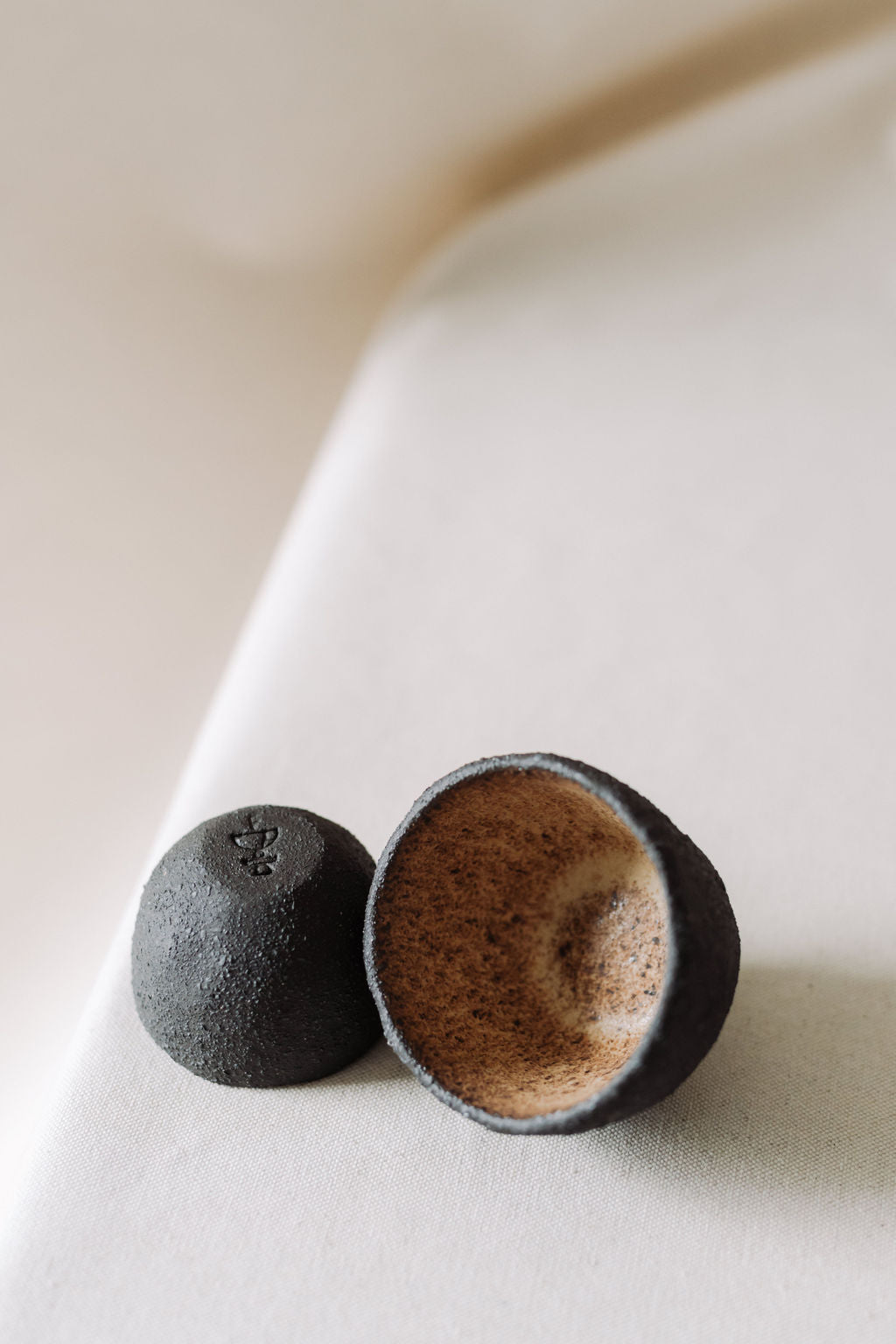 This cup is made of black stoneware with chamotte, hence the name we chose to give it on here to differentiate it. It has a capacity of 200 ml. It is textured and it is raw! If you are feeling fancy, add the small chamotte plate to the combo, as a saucer. Pair as an yin and yang with its sister in beige stoneware. The cup is glazed with an ecological glaze, beige with brown effects, and is dishwasher safe. Just imagine swirling in it your favorite brew, whether tea or coffee or a liquid of your own concoction. This being a handmade product, dimensions and colors may slightly differ from one item to another.
