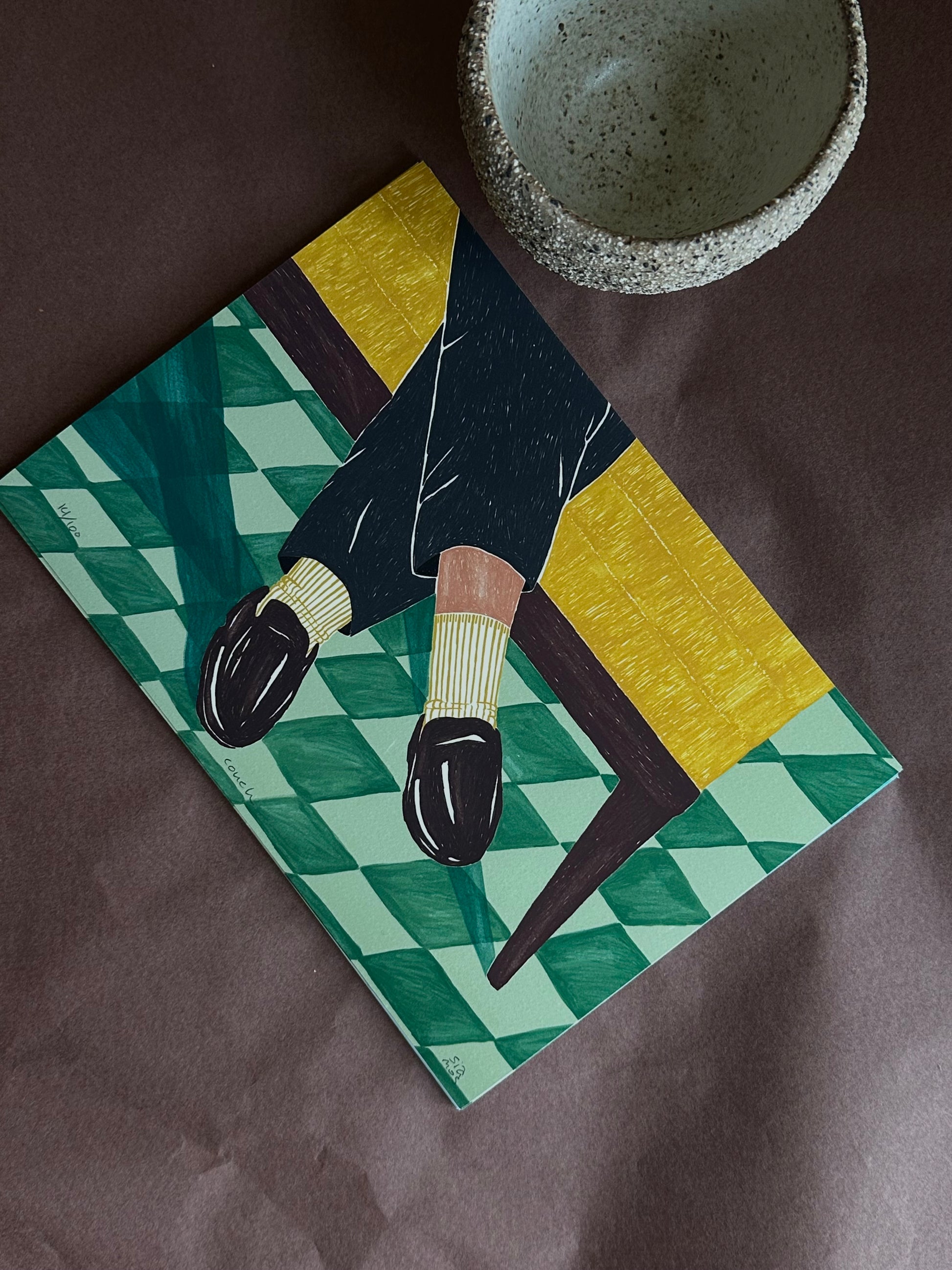 The couch art print comes in twi sizes: A5 (20.5 x 14.5 cm) and the larger 40 x 30 cm version. Each print is signed.