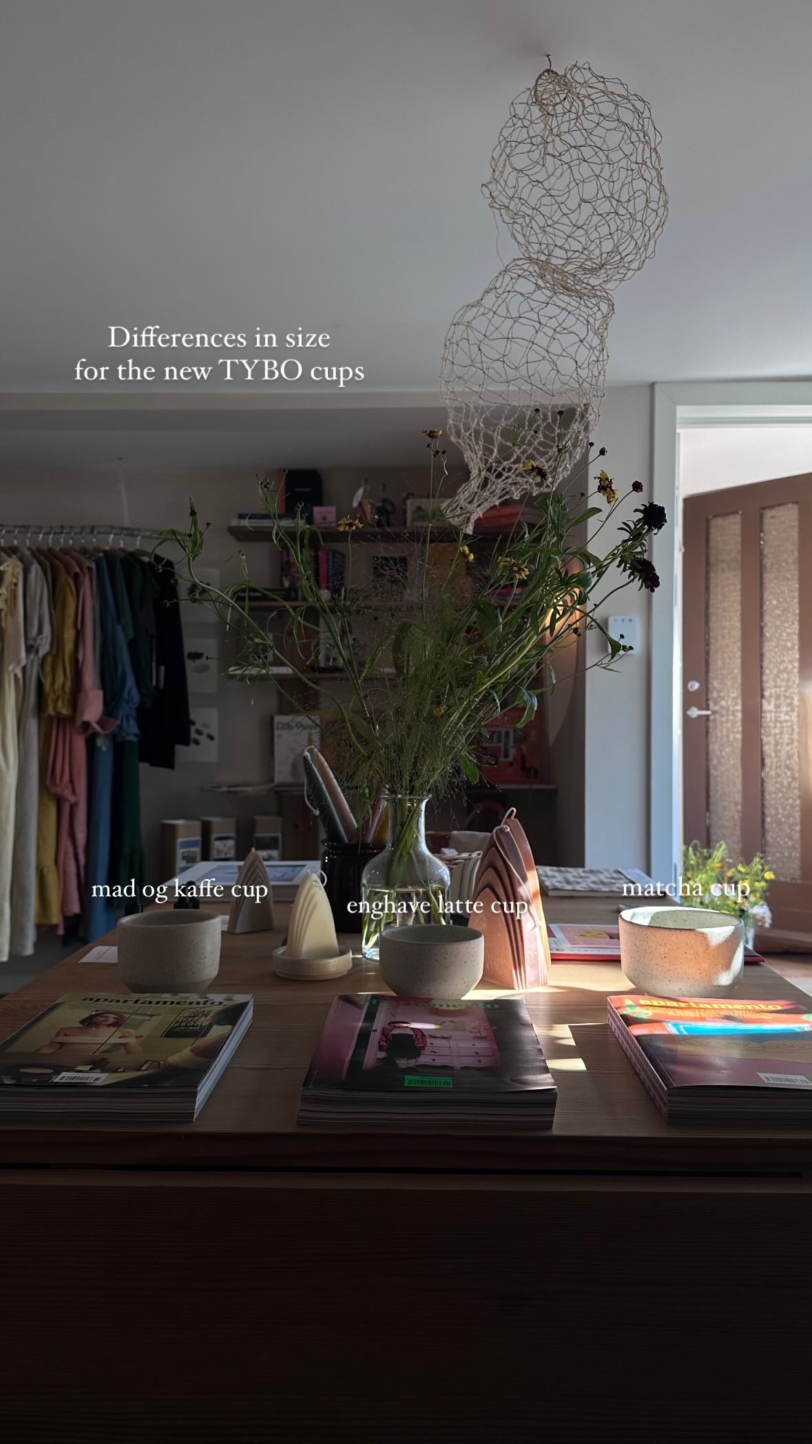 Since each piece is individually handmade, measurements are for guidance only. Each cup is unique and can differ in size and shape, and the colors of the glaze can vary from piece to piece. The Enghave is lower than the Mad og Kaffe cup, and although very similar in shape to the Matcha cup, it is smaller in size. This would definitely make for a beautiful latte cup, or simply for a very generous dose of coffee.