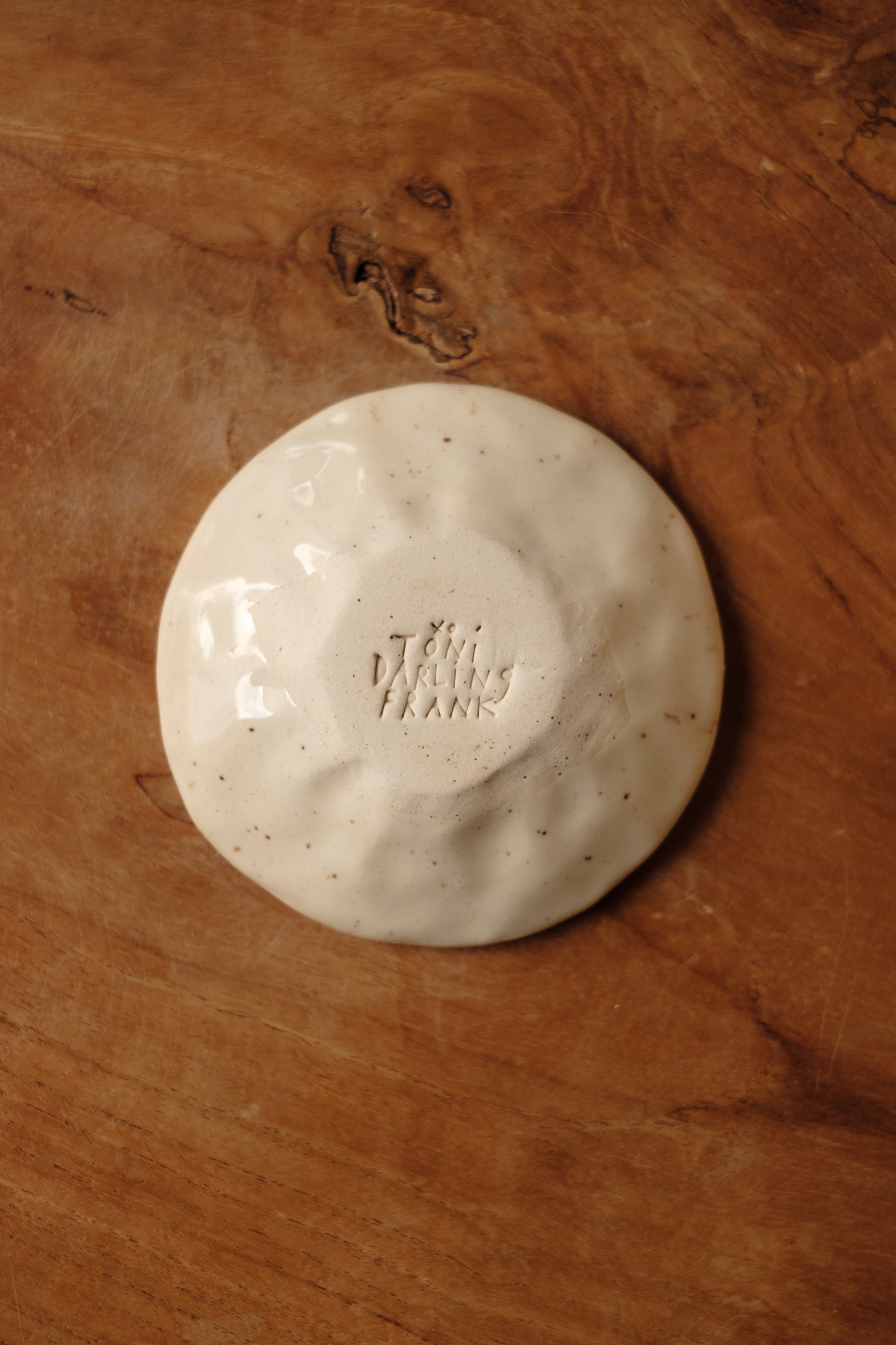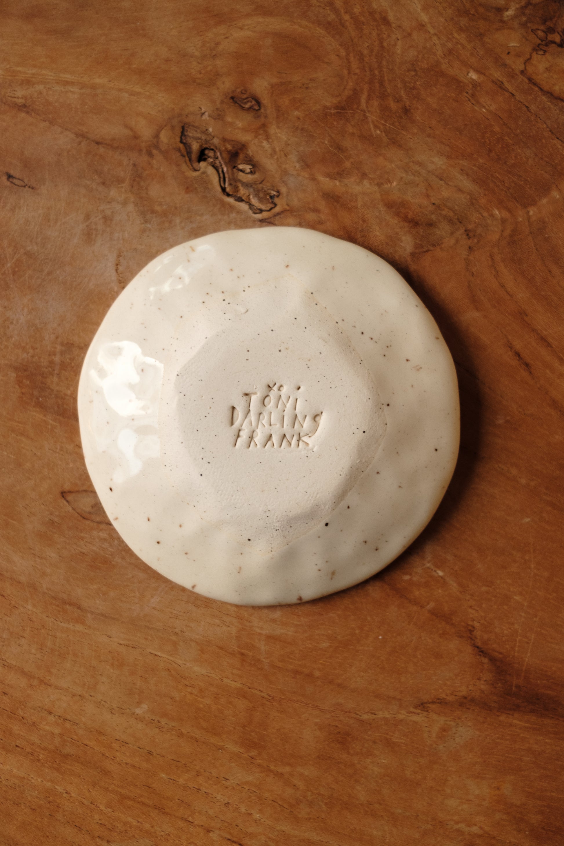Toni Darling Frank is a Toronto-based artist who has long caught our eye. Her work primarily involves working with and drawing on clay. Her background in textile and pattern design is reflected in her bold, vibrant color combinations and intricate, quilt-like patterns. Toni designs unique pieces that are both playful and usable, an unmistakable example of functional art.