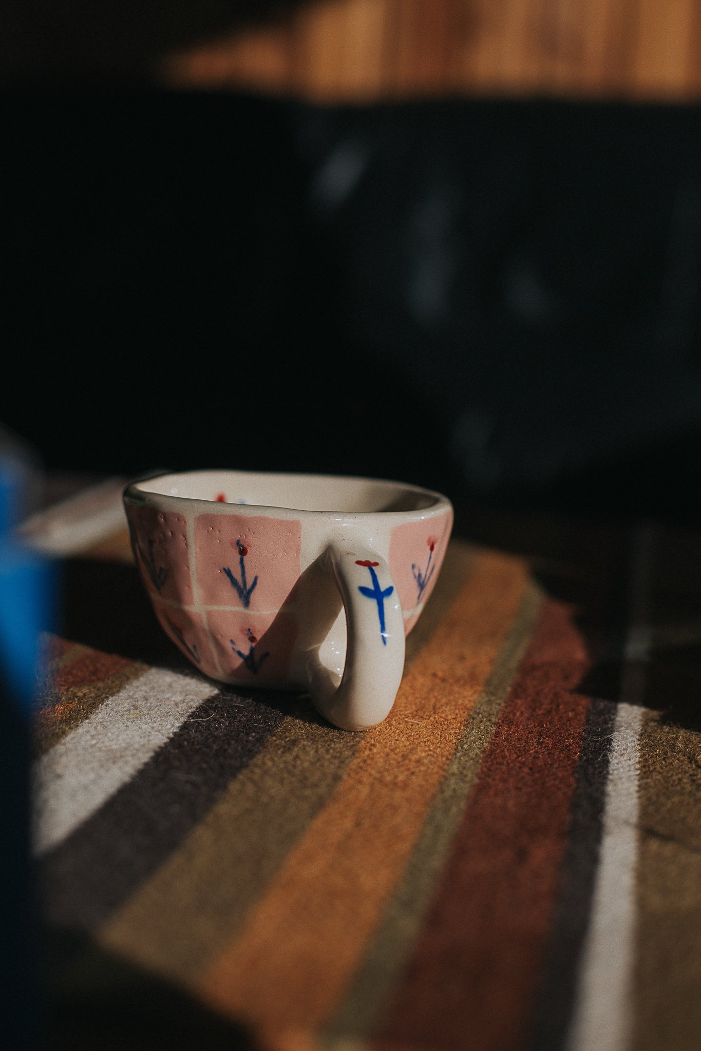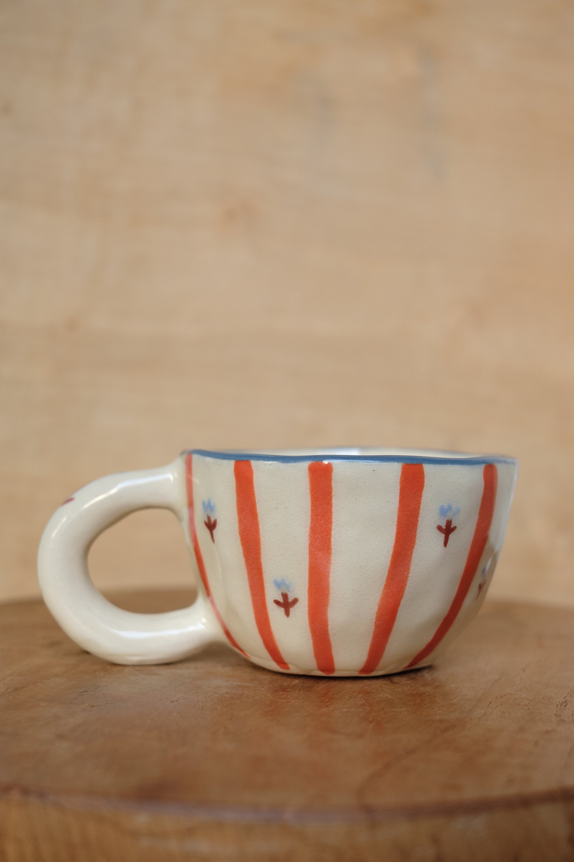 This cappuccino mug is unique. This mug is handmade and hand-drawn/painted and so dimensions and colors may differ from what it looks like on screen. It is difficult to perfectly capture these colors in the online. You will just have to trust us that these pieces are even better in reality and that they will bring a note of joy, playfulness and warmth to your home.