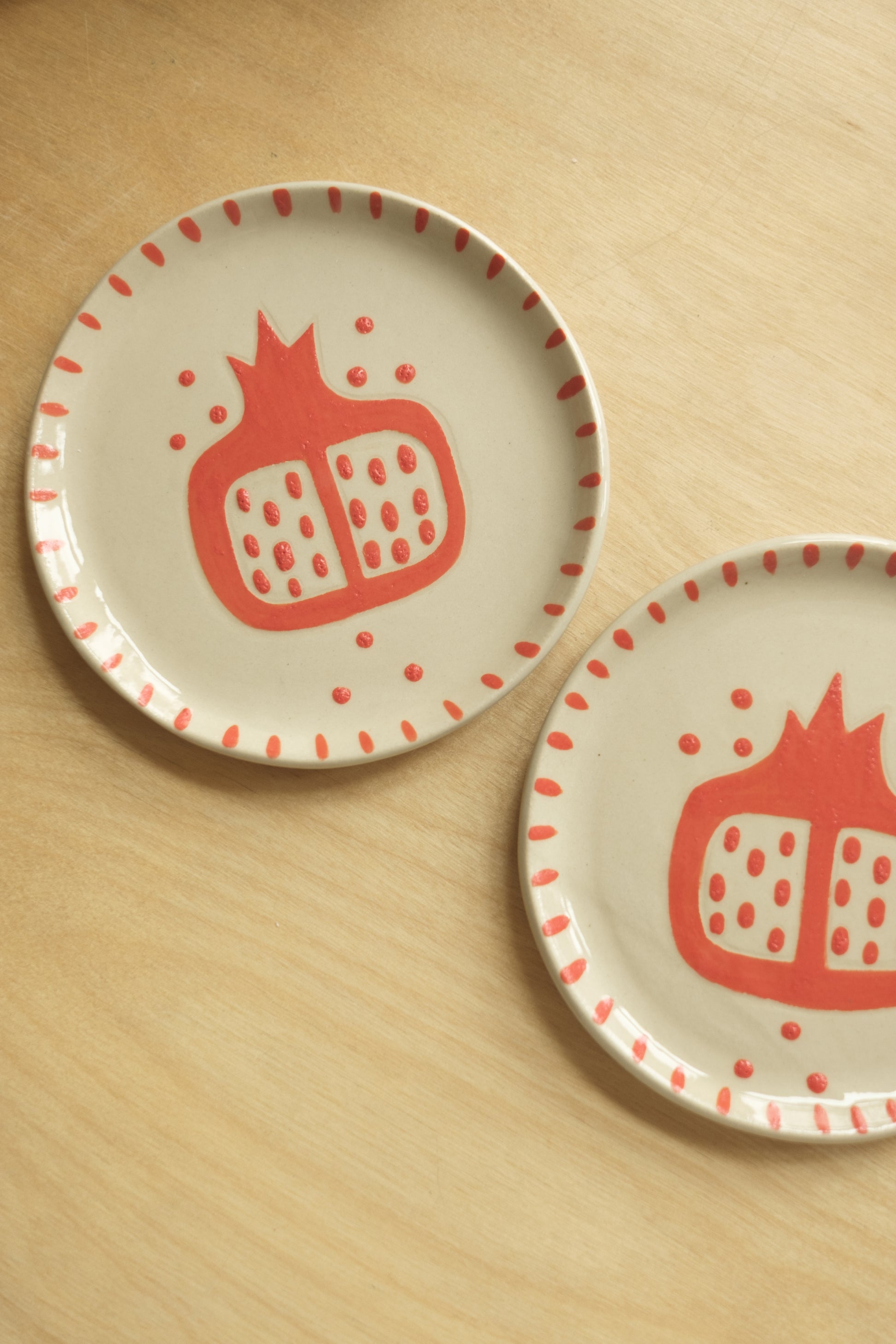 This mini plate depicts a ripe pomegranate, an exotic and exciting fruit, a powerful symbol of abundance. This plate is handmade and hand-drawn and so dimensions and colors may vary slightly from what they look like on screen. Allow your imagination to decide what you may use them for. Isn't it wonderful to be able to dream? Here are a few ideas: jewelry, nuts, beads, seeds, salt, spices, pieces of candied ginger, your tea bag, spoon rest, a cookie,
