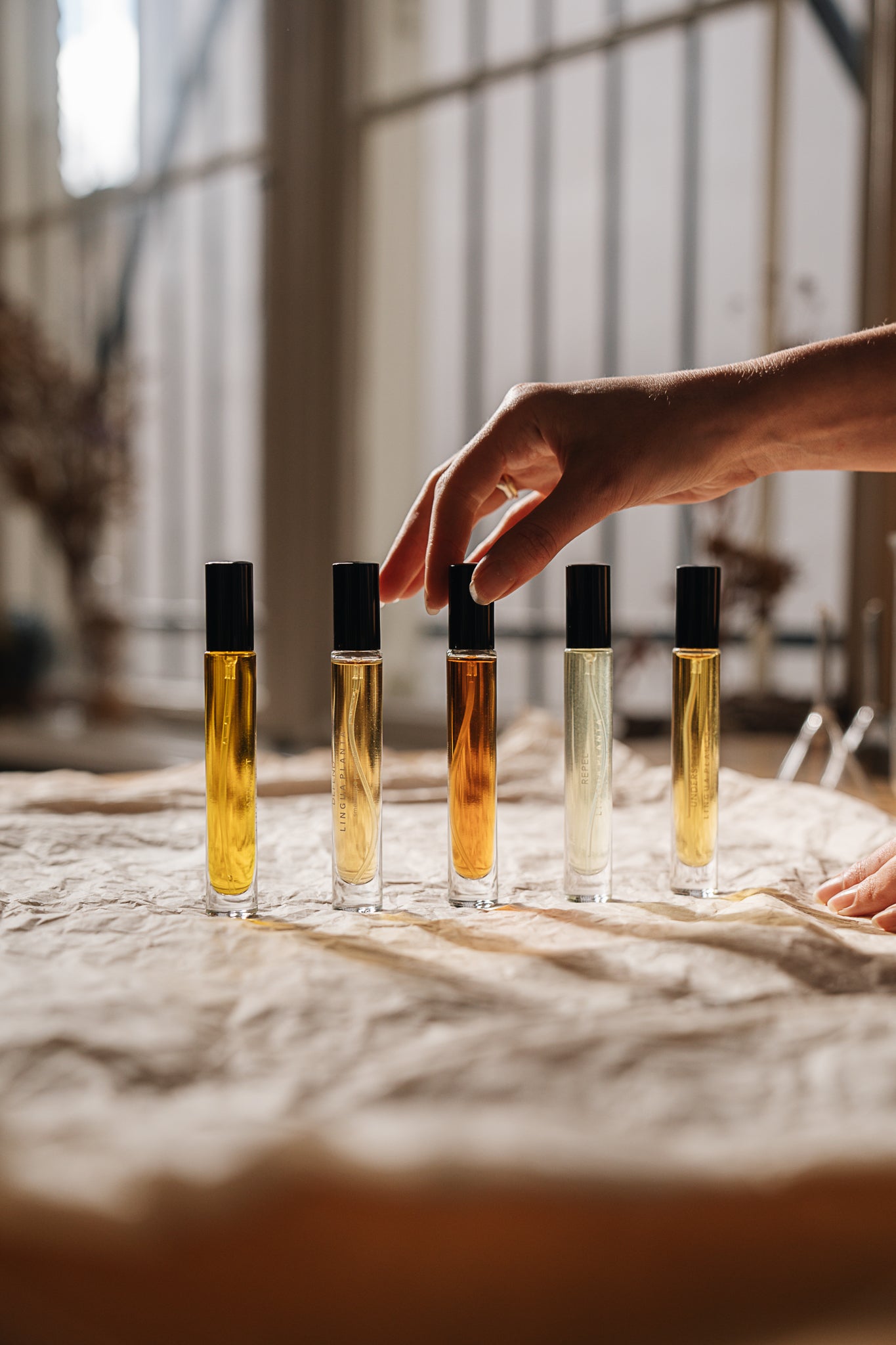 Lingua Planta is the language of scent, through and through. Its founder, Merle Bergers, experienced the the inter-connectedness of plants and trees, insects and bigger animals firsthand by growing up in a small forest in the east of the Netherlands. During her studies at the Design Academy Eindhoven she grew more and more fascinated by the possible reality of plant communication. Nourished through books by the likes of forester ecologist Peter Wohlleben and writer/biologist Robin Wall Kimmerer she went on a journey to dig deep into the matter of plants fragrant messages. Inspired by the volatiles plants use to communicate, Lingua Planta has its roots deep down in scientific research but found an aesthetic translation in perfumes. Lingua Planta is based in de Bilt, Utrecht, the Netherlands.
