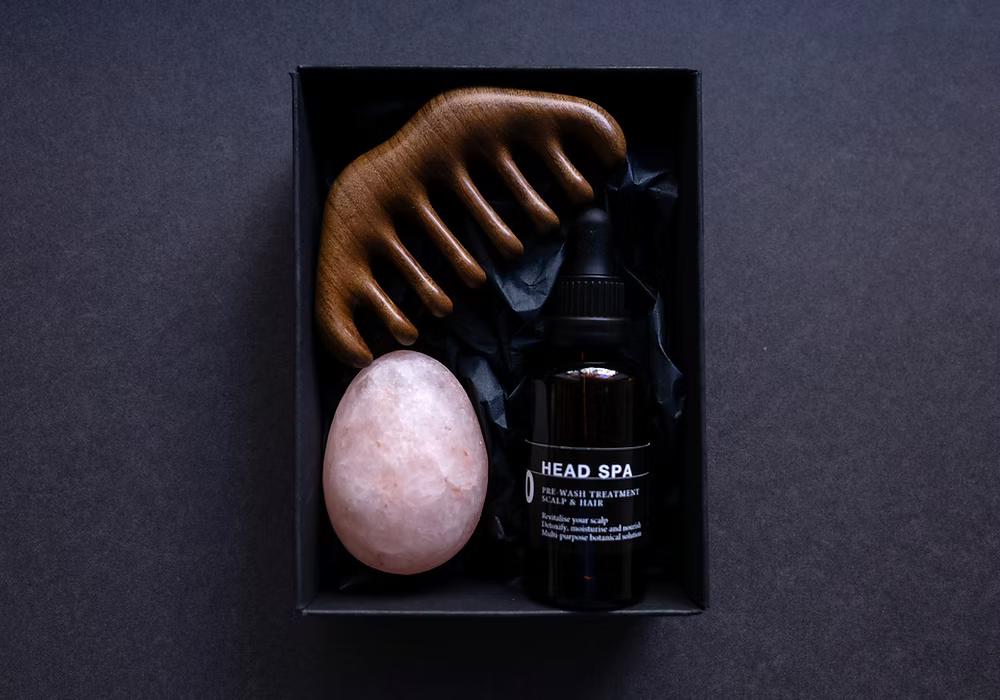 contains: himalayan crystal salt deodorant bar + scalp massage wooden comb + 50ml head spa multi-purpose botanical solution