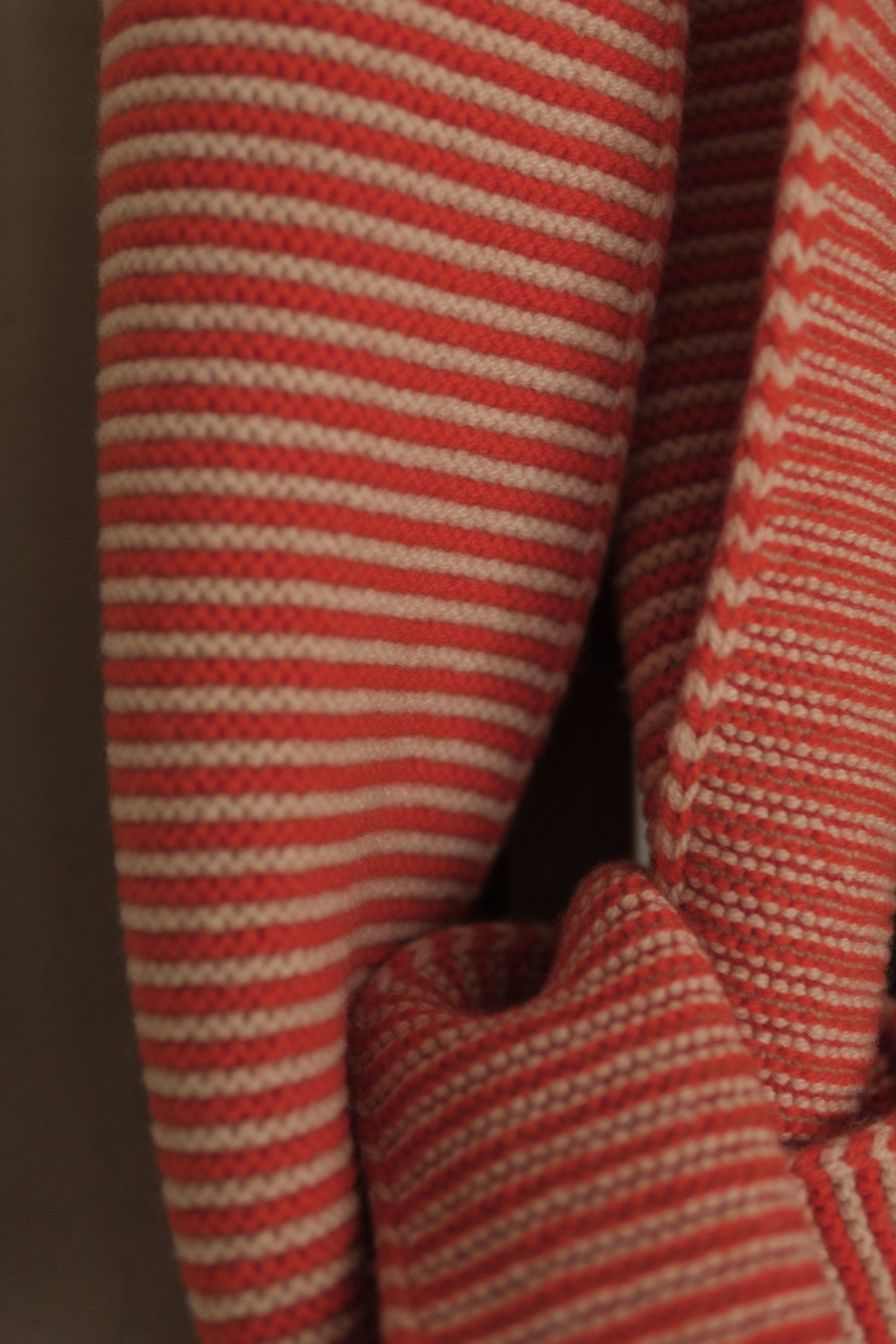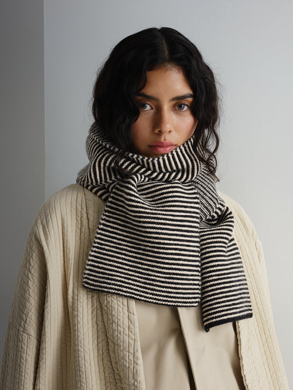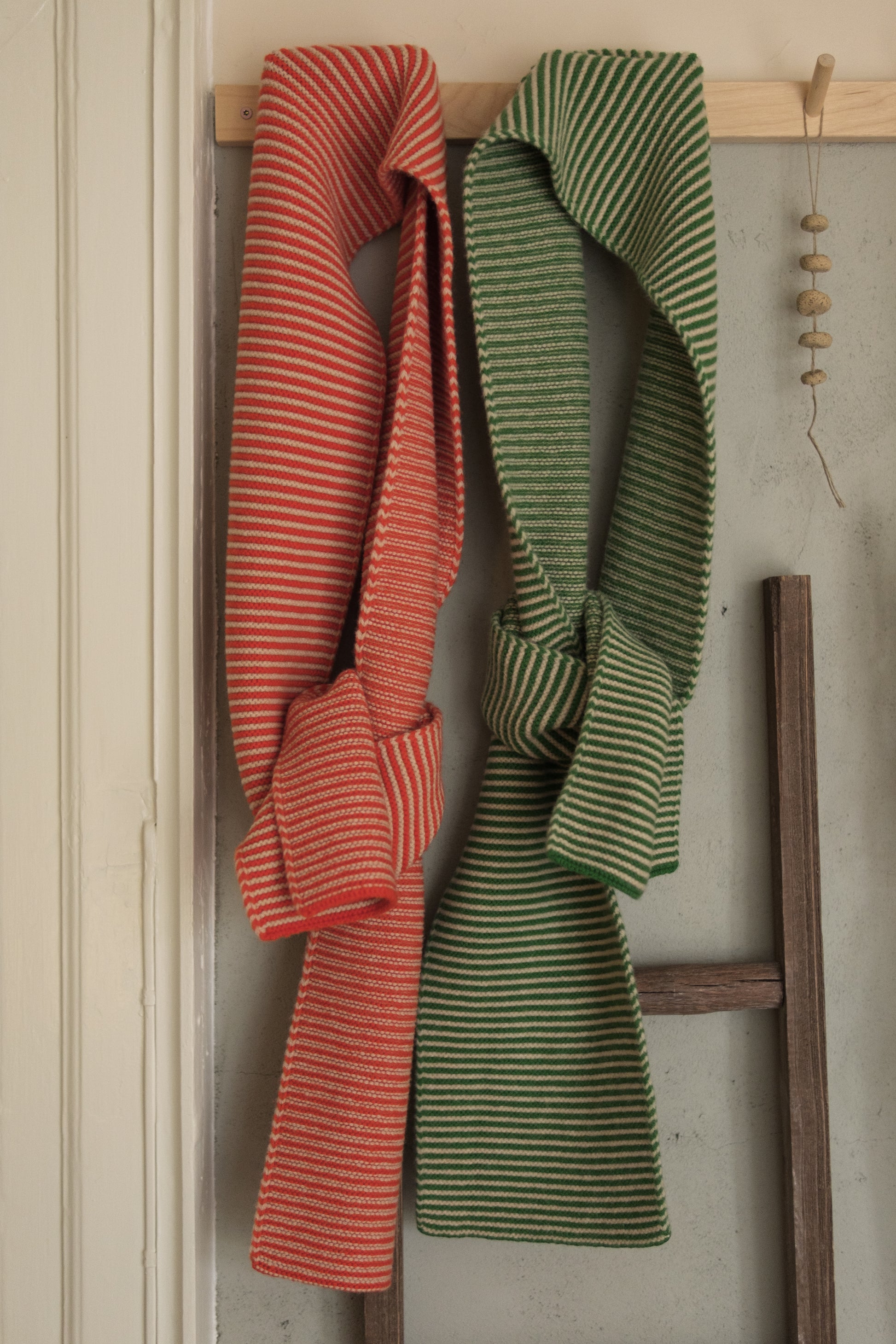 This large garter stitch scarf with narrow stripes is made from the softest lambswool and measures 184 x 19 cm. This scarf is made in southwest Scotland using traditional techniques and hand finishing. This knitting mill was established over 100 years ago and are famous for producing the original Scottish ‘Tammy’ - a type of beret.
