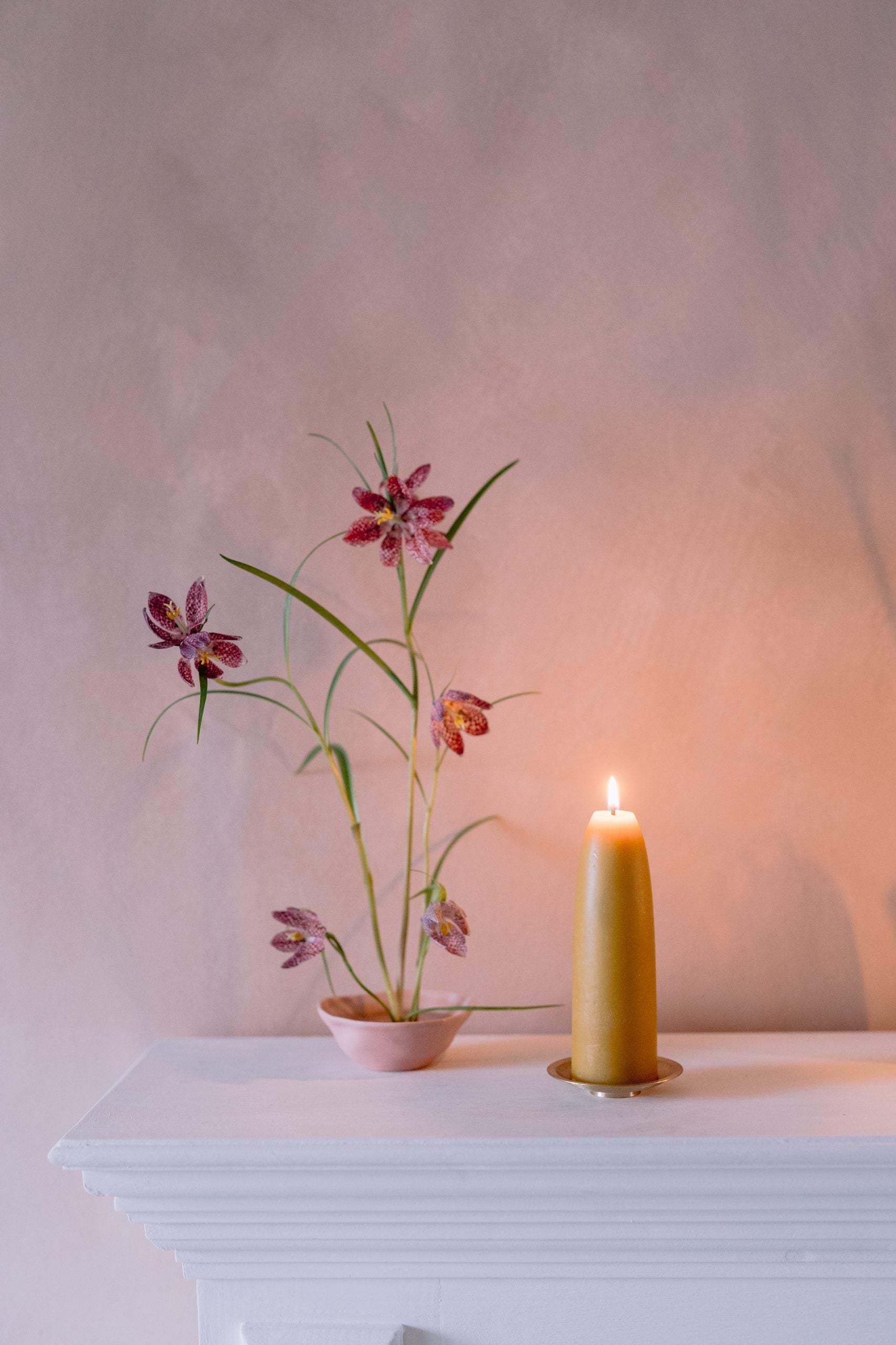 Mama grasutelor is a tall, regal candle that can easily stand on its own on a tray or stone slab. As it burns, it will form a pleasant, peaceful wax pool around the wick. It is meant as a simple pleasure for everyday living. Combine it with hand-picked flowers from your favorite patch and enjoy a gratifying moment in your safe space. Product color variations can be expected due to natural variations in the color of beeswax. Each candle burns for about 32 hours. Trim the wick (to about 1 cm) if you would like the candle to burn slowly and do not leave the burning candle in a drafty spot where it can burn unevenly (and is also a hazard). Collect any leftover wax and reuse it to make playful candles or for other home-crafts.