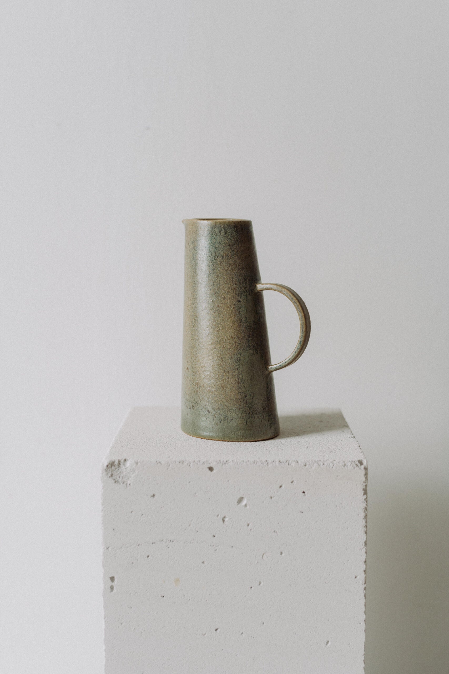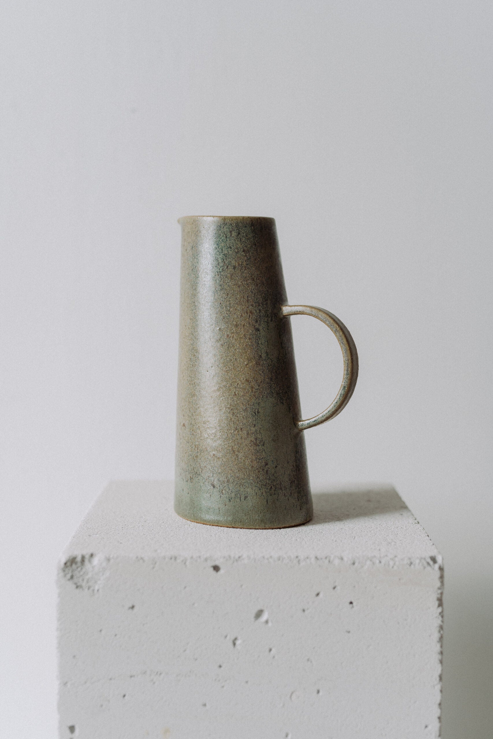 This carafe is très chic with its 750 ml to enjoy! It is handcrafted of speckled beige stoneware with a matte/semi-matte glaze in sage green with beige effects. It can be used for H2O or flowers or as companion to the Matera sourdough bowl when prepping your bread dough. This being a handmade product, dimensions and colors may slightly differ from one item to another.