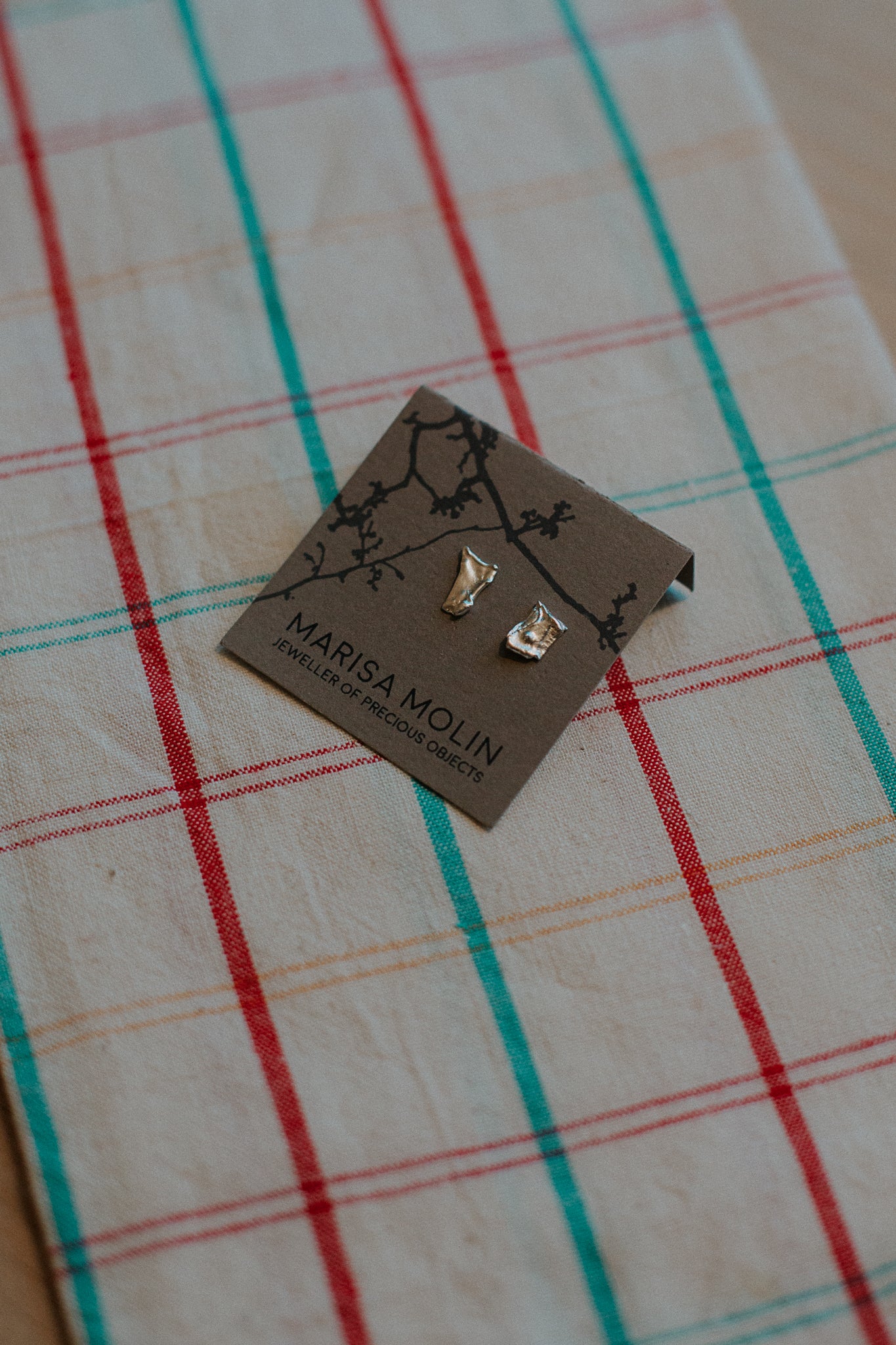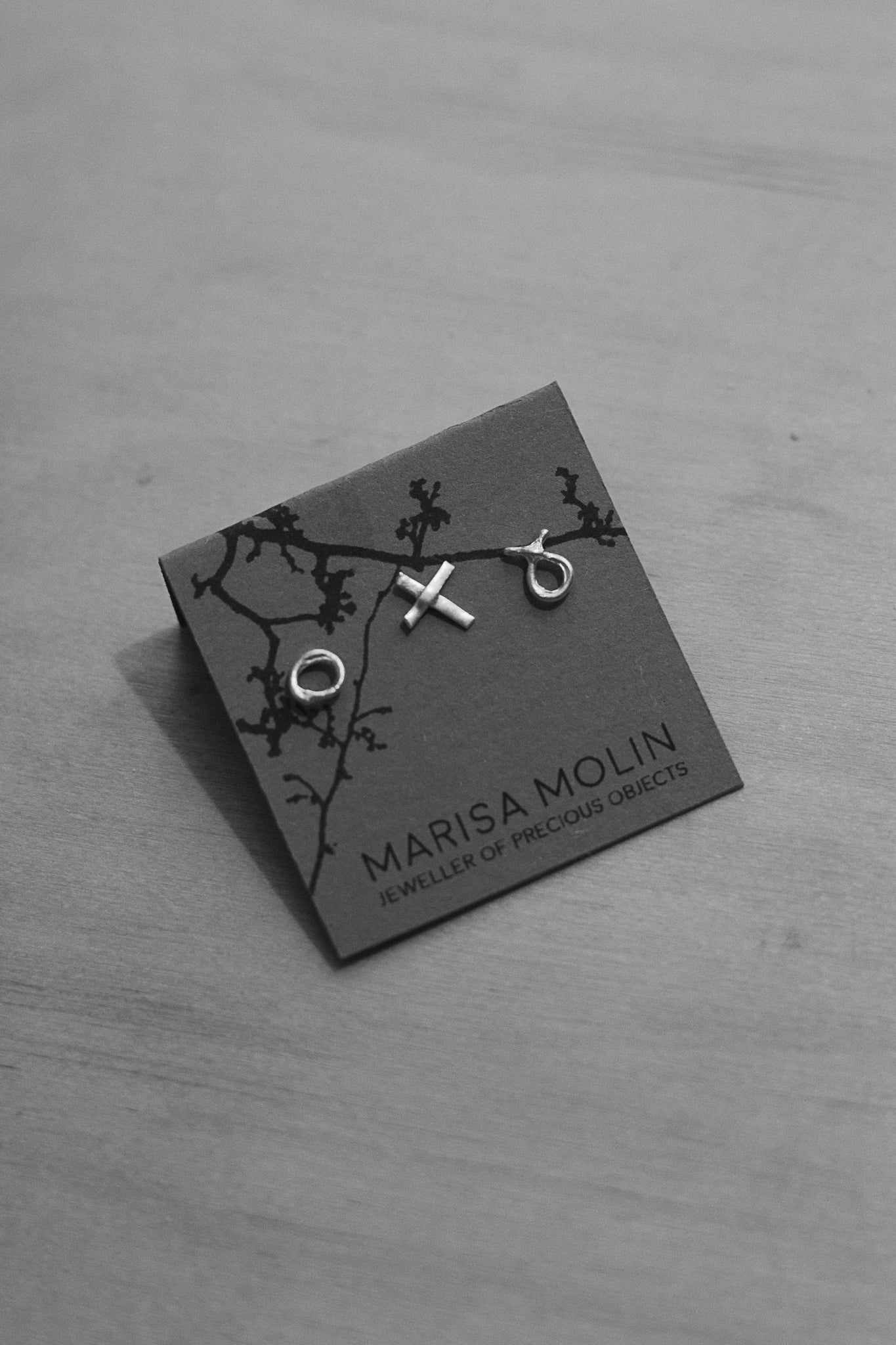 The melting point earrings are Marisa's way of using up her medium, silver, to the last piece. She has designed a fun, playful way, to turn leftovers into love.