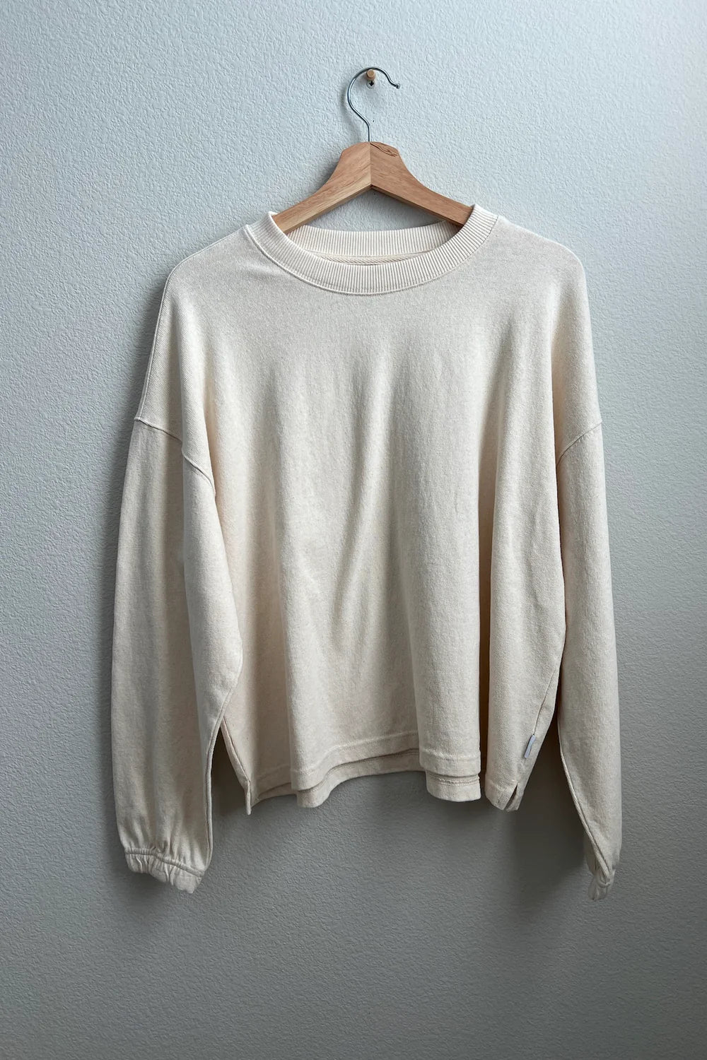 The Naturelle Tee was born of the need for a simple long sleeve with a delicate touch. Super raw textured yet soft and airy with elastic ruched sleeve opening that creates a slight balloon sleeve effect when worn down. This tee does not shrink in the wash and is garment dyed and pre-washed for a rich textured look that is not see-through.