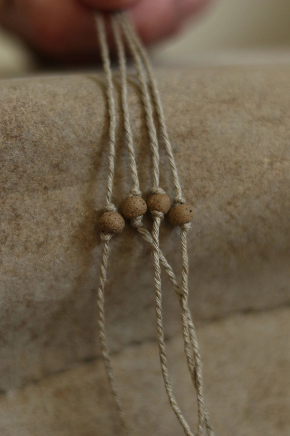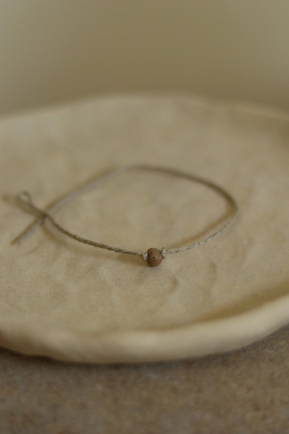 Each bracelet features a handmade ceramic bead, made by the artists, from the same clay they use for pottery. The cordage is 100% linen, one of the oldest fibres known to ever be used, bringing you back to a time where the art of creation was a slow and ritualistic process.