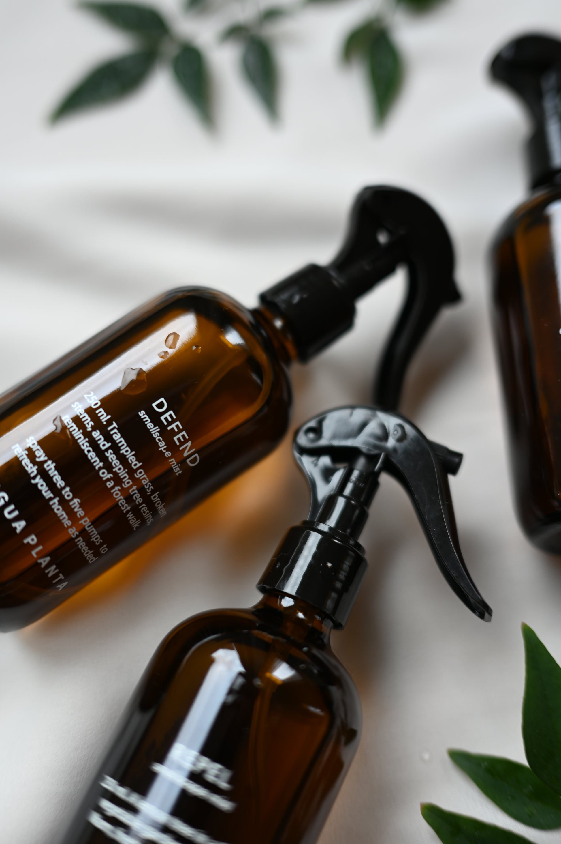 Defend, as room fragrance, is known for its grounding and anxiety relieving effects. This scent is deeply green, earthy, primal, and a little wild but deeply comforting too. Use a couple of sprays in your space to invigorate your mind and body. Defend reminisces a forest walk of green broken stems, trampled grass and seeping tree resins. The fragrance is based on the regenerative aspects of nature with its many fragrant defense mechanisms. Cedarwood, the smell of freshly cut grass, oakmoss absolute and resins embody the spirit of an ancient forest.