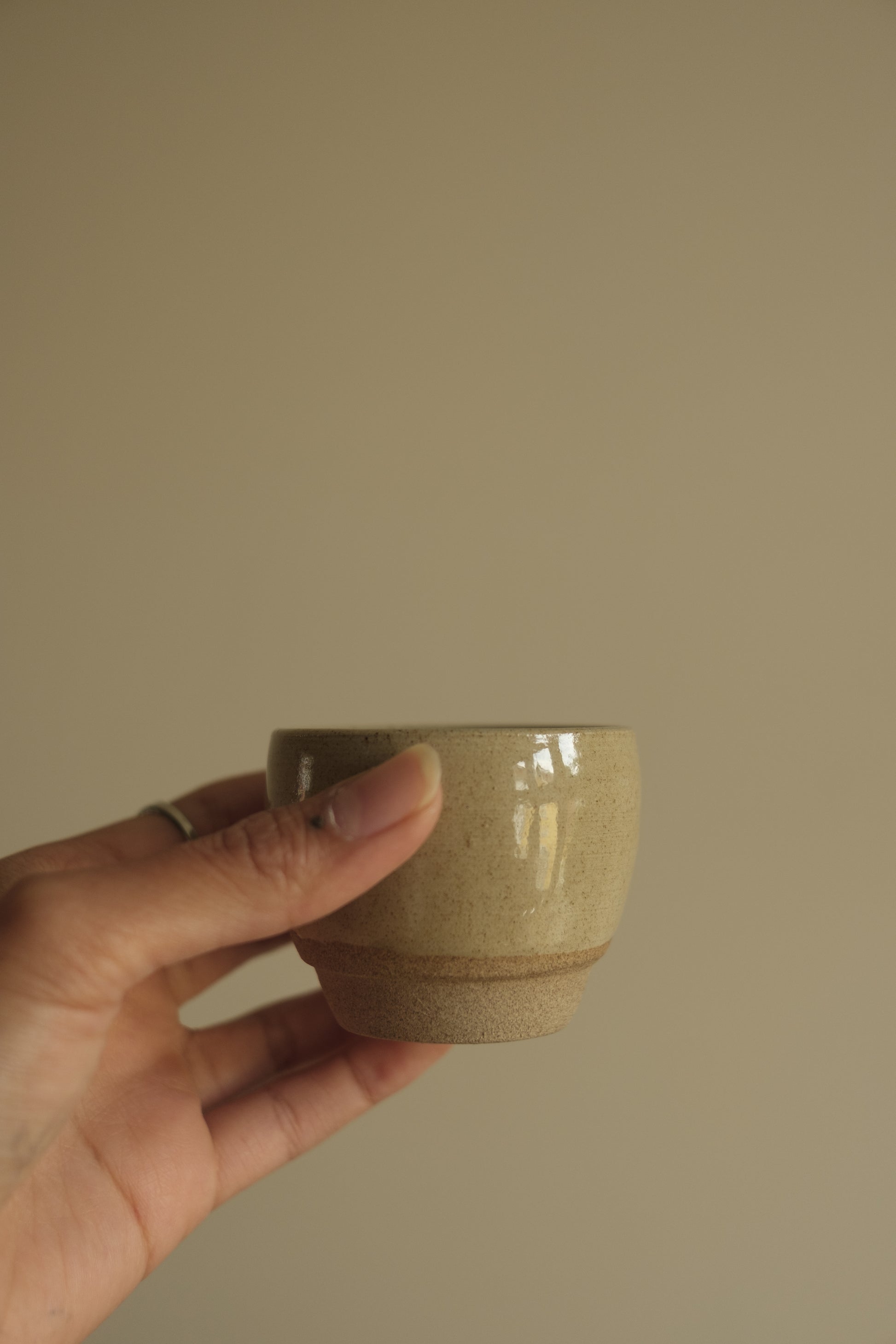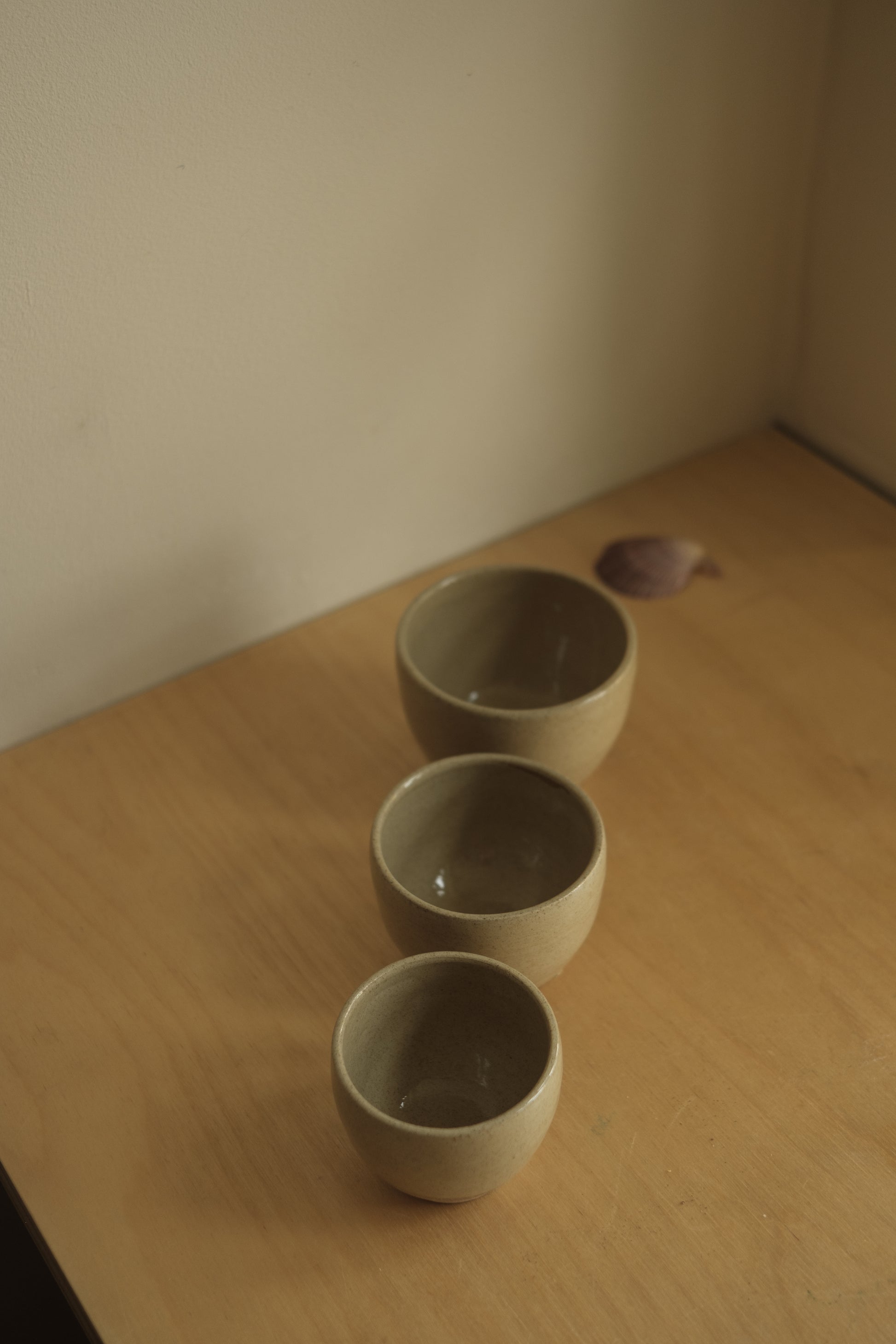 This cup, in three different sizes, immediately made us think of a sake set. Of course you may choose which size fits you and for what purpose, but we thought the set looks so very cool together with the ceramic bottle with the foraged stone cork.