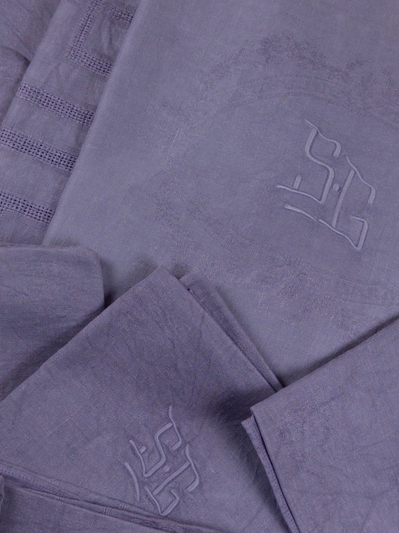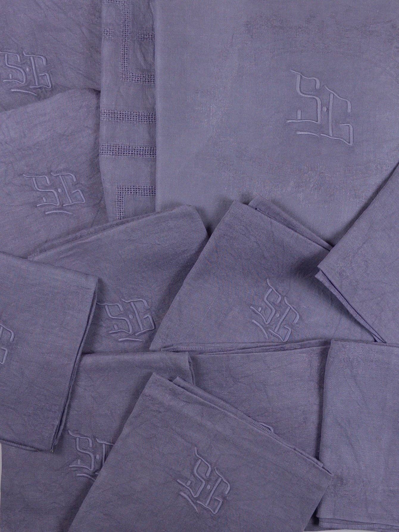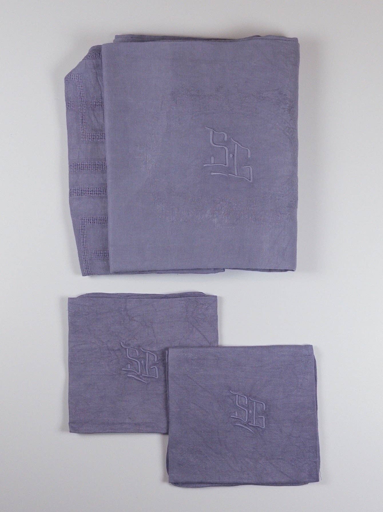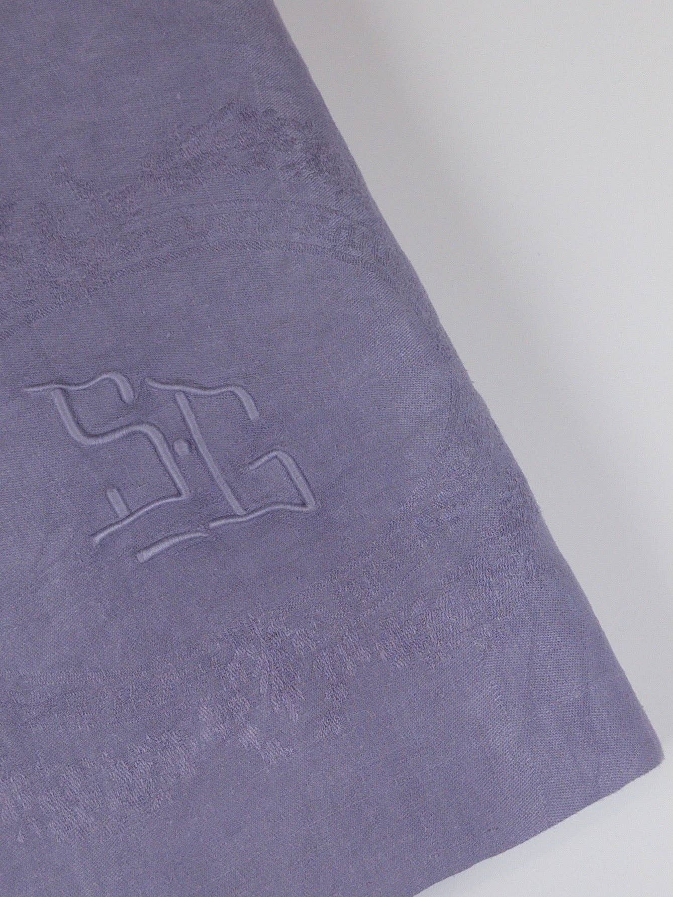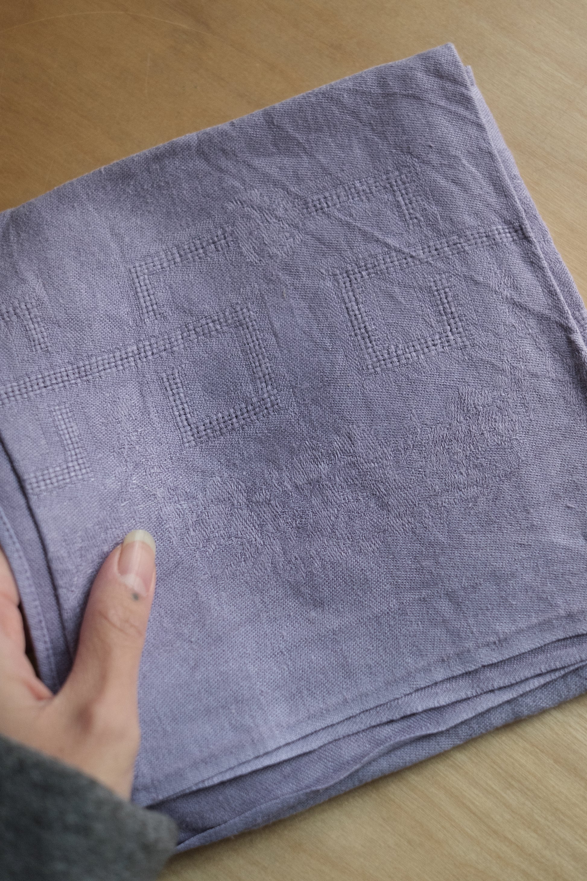 antique french tablecloth - 160x240cm - with 10 antique damask napkins - lavender