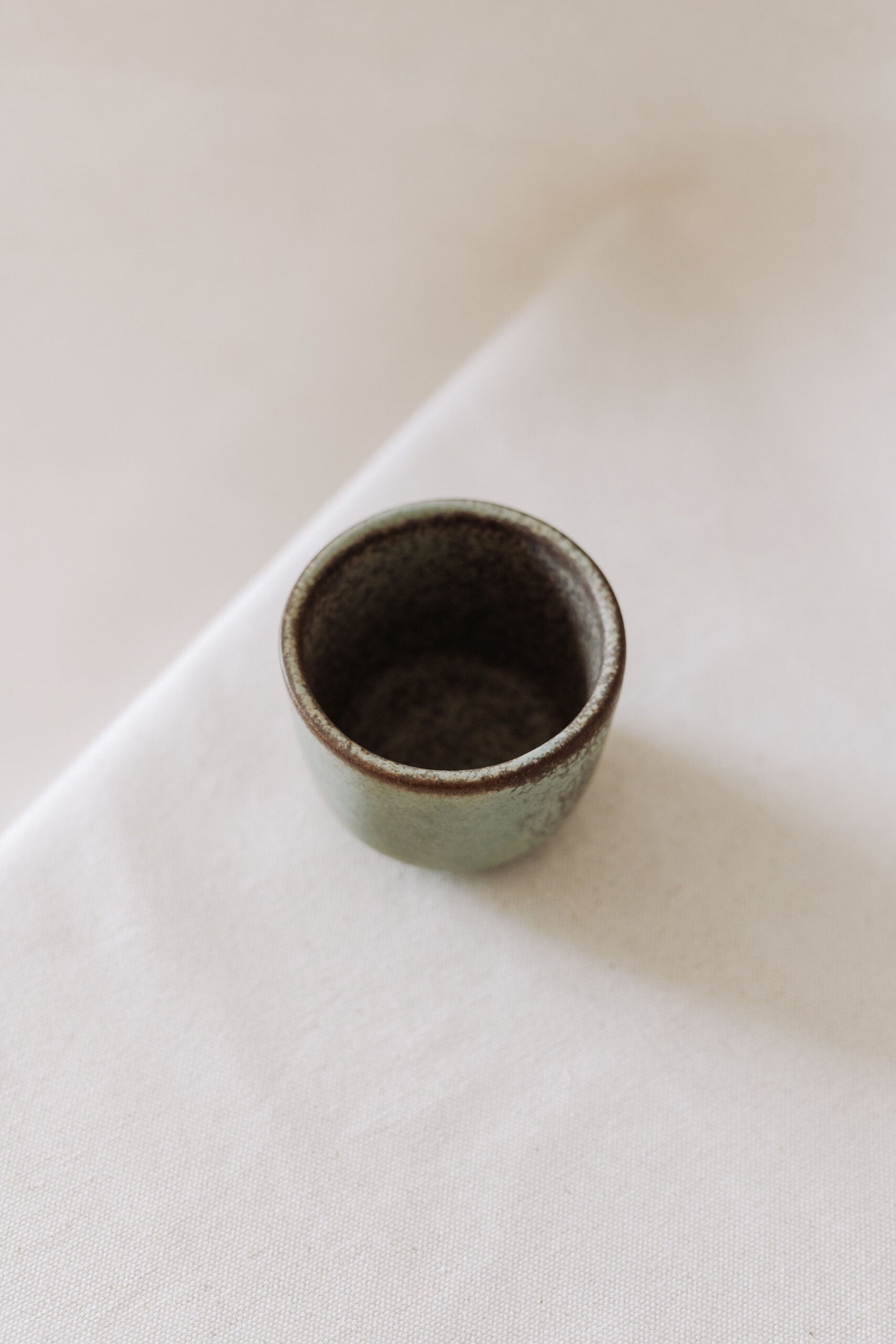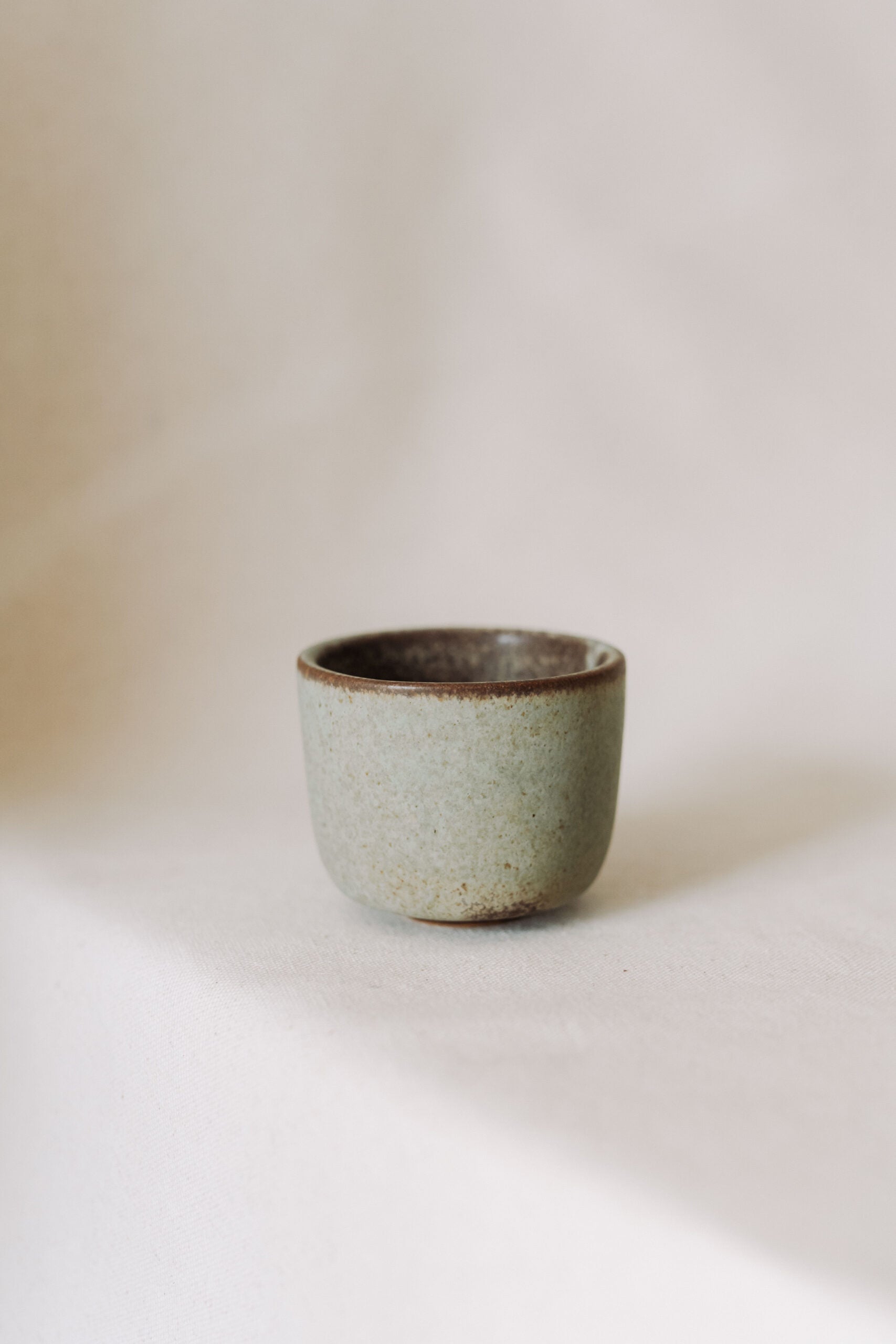 This sage green cup is handcrafted out of stoneware and glazed with an ecological glaze that gives it a sage-green and dark brown appearance. The cup has a capacity of 180 ml and is dishwasher safe. This being a handmade product, dimensions and colors may slightly differ from one item to another.
