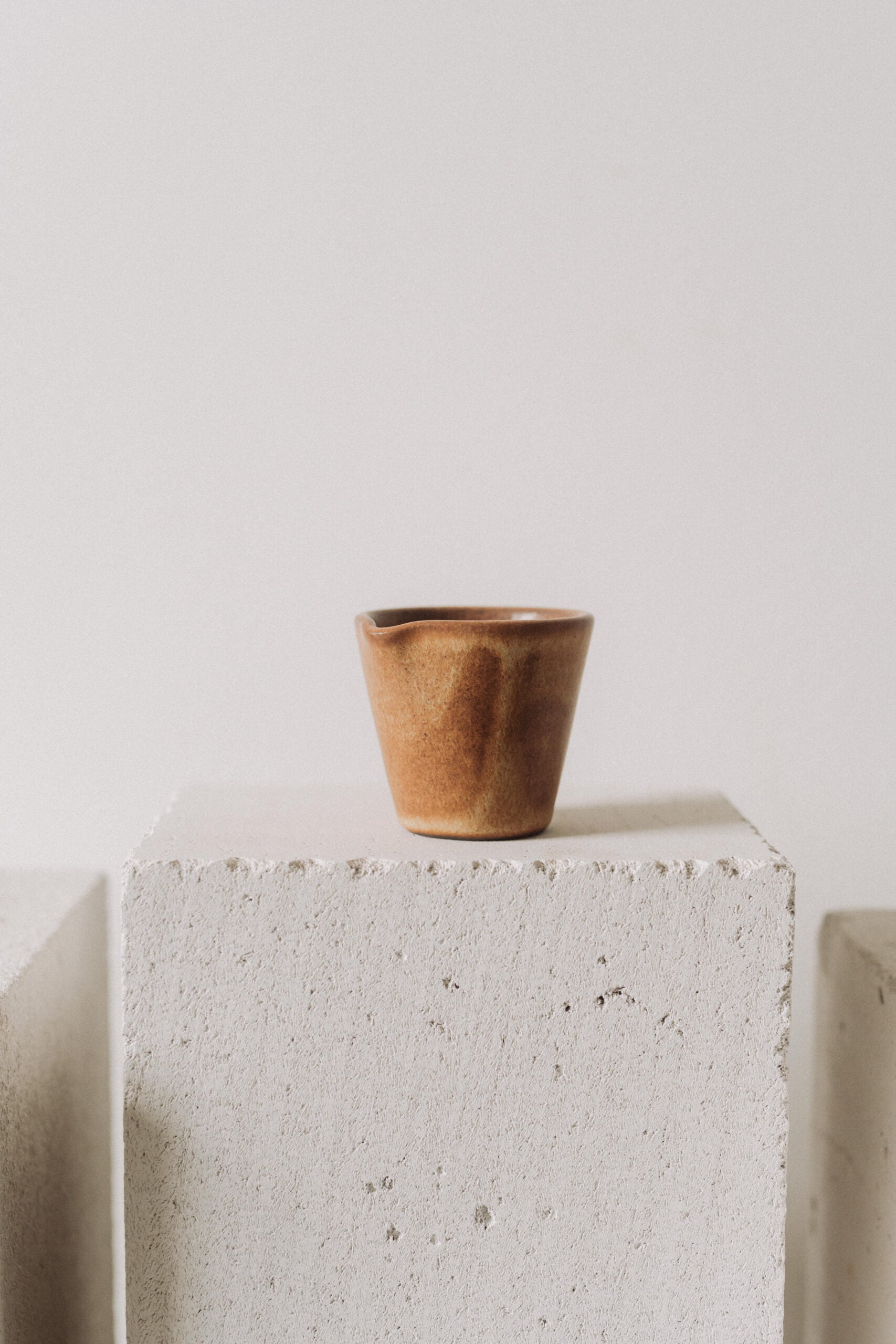 This small pourer has a capacity of 100 ml and can be used for a variety of liquids, from sauces to milks to syrups. It is made of beige-grey stoneware with brown effects, unique depending on glazing results. The pourer is glazed with an ecological glaze, and is dishwasher safe. This being a handmade product, dimensions and colors may slightly differ from one item to another.