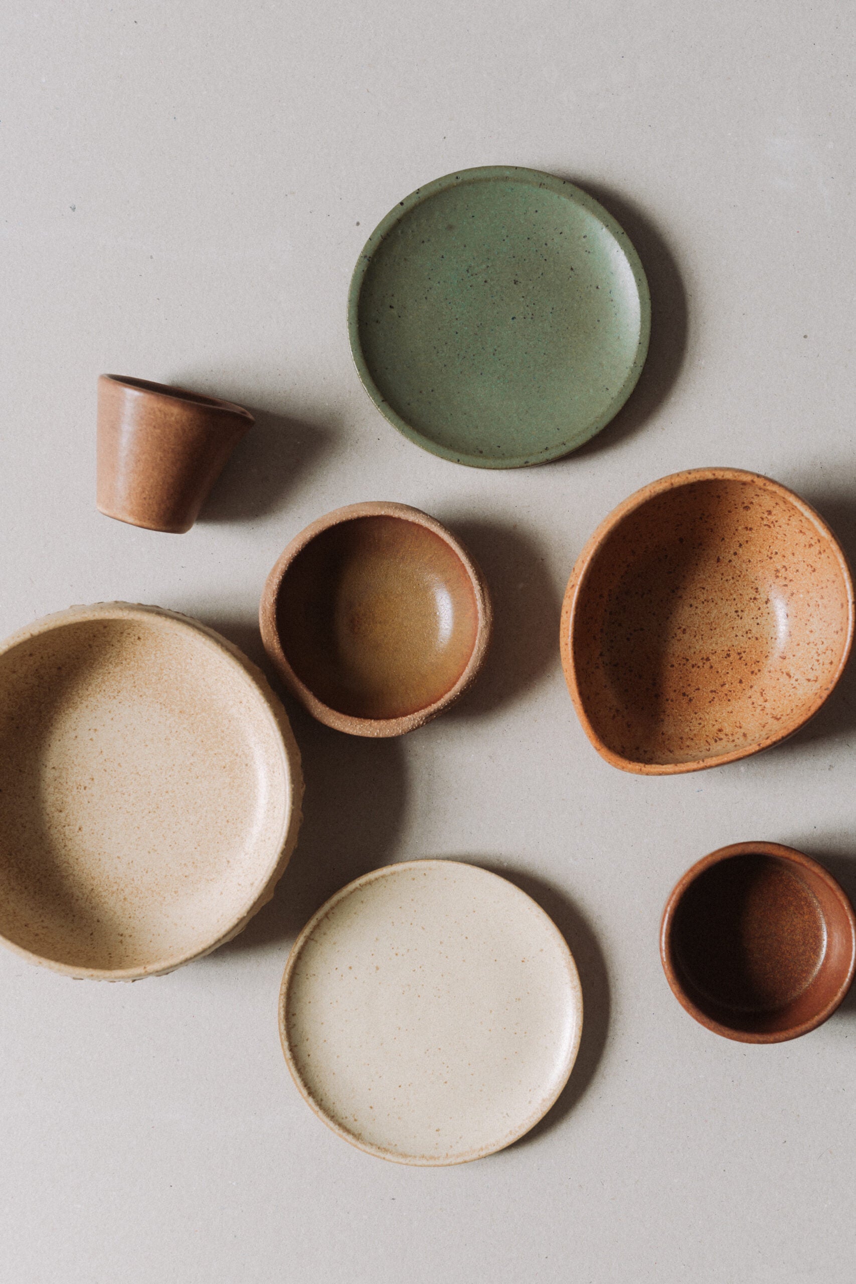 Alexandra and Florin, the couple behind POEMI, are passionate self-taught ceramic artists who began their clay journey in 2016 in Sibiu, Romania. With no prior experience, they dedicated themselves to mastering the art of pottery. They started with a small kiln that they keep to this day as a reminder of their humble beginnings, and since have designed custom tableware for restaurants around the world while promoting sustainable and durable ceramics for daily use. Inspired by childhood memories and the beauty of everyday life, their POEMI collections tell unique stories of connection around shared meals: "The plaster on the walls of the house, the passing of seasons which puts its mark on all and everything, the table with the three-legged chairs we used to eat at, the wooden tray where the bread was kneaded."