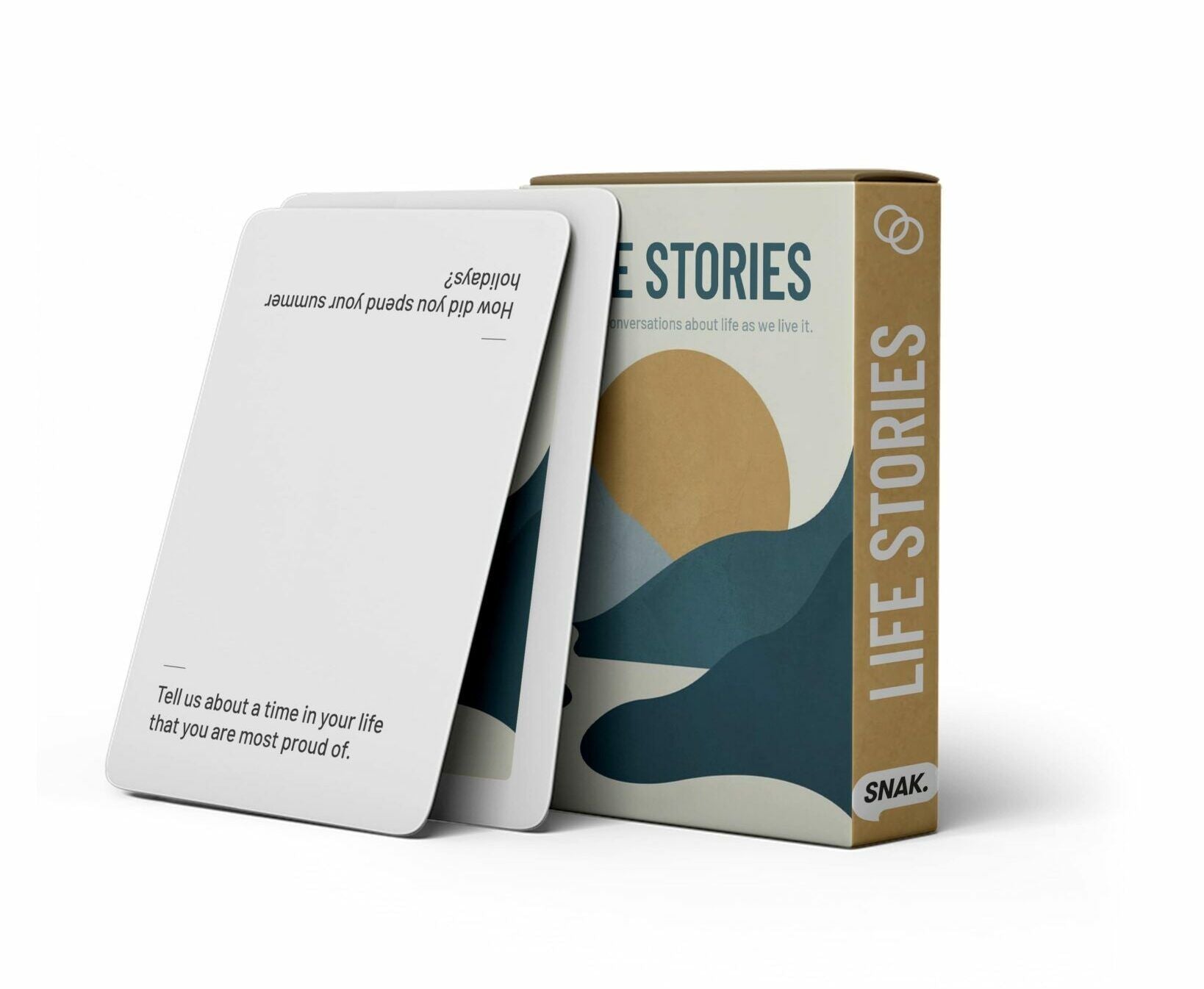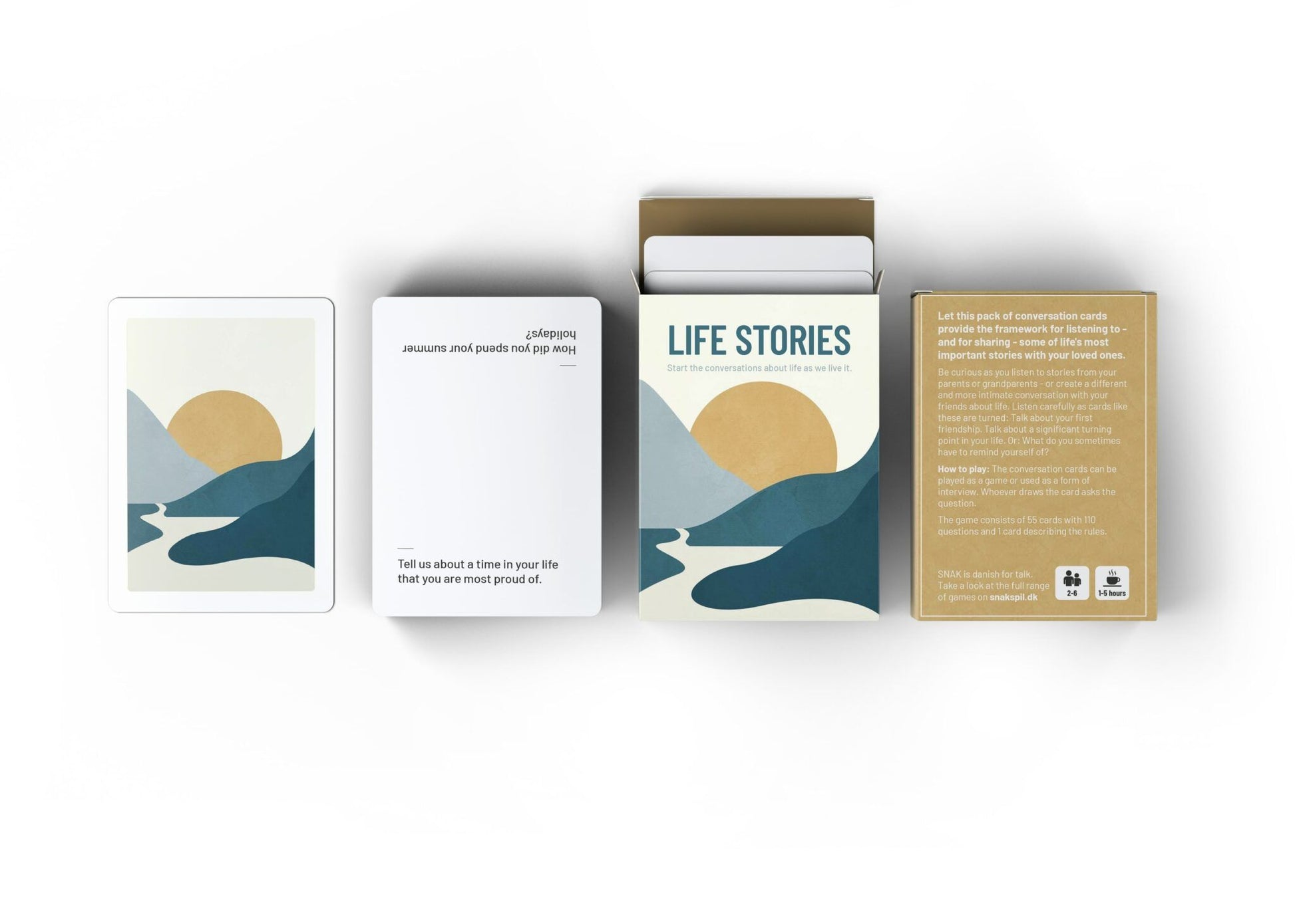 Let this pack of conversation cards provide the framework for listening to – and for sharing – some of life’s most important stories with your loved ones. Be curious as you listen to stories from your parents or grandparents – or create a different and more intimate conversation with your friends about life. Listen carefully as cards like these are turned: Talk about your first friendship. Talk about a significant turning point in your life. Or: What do you sometimes have to remind yourself of?