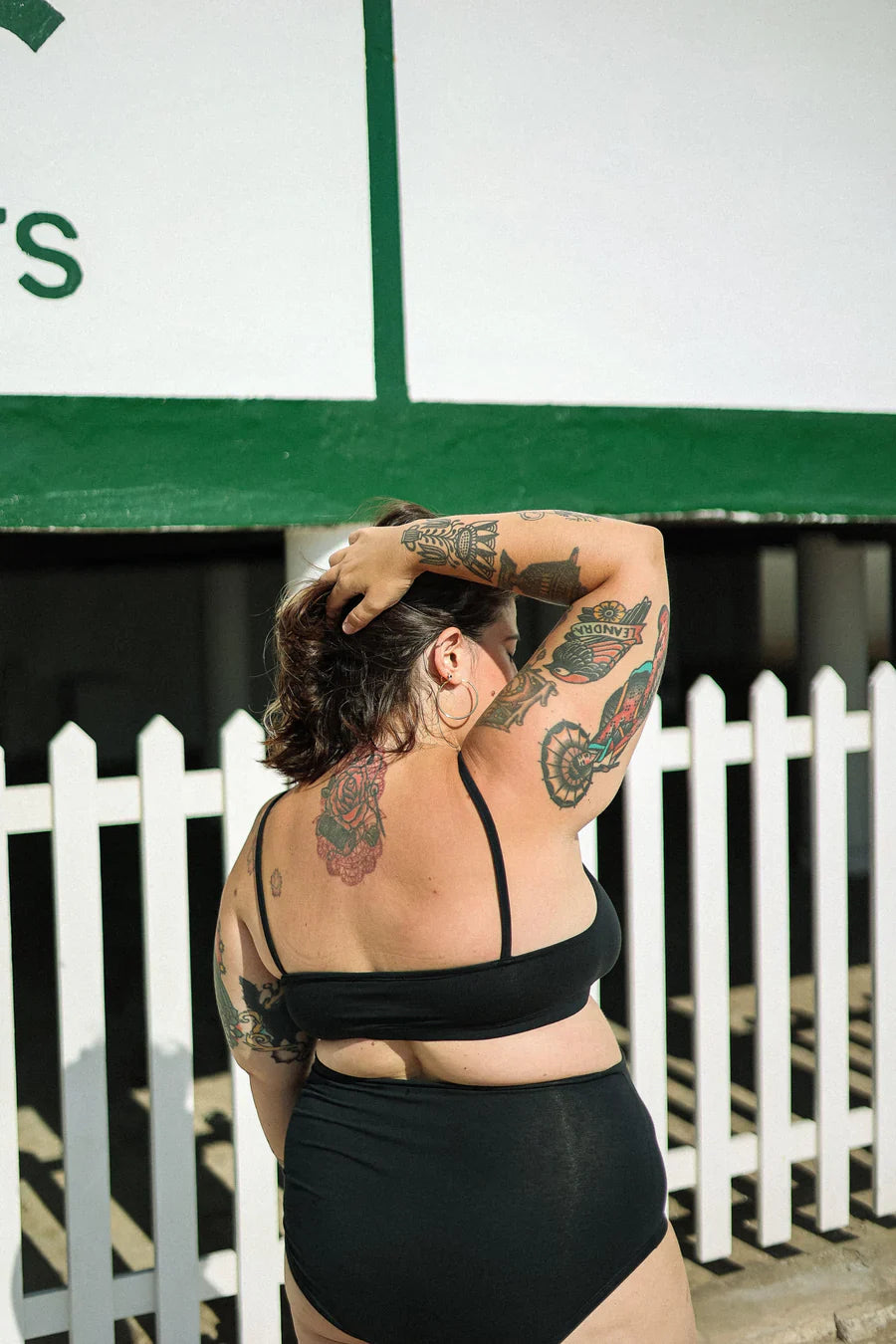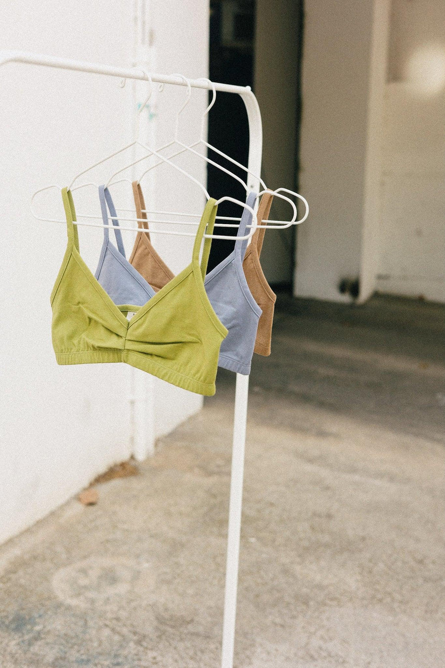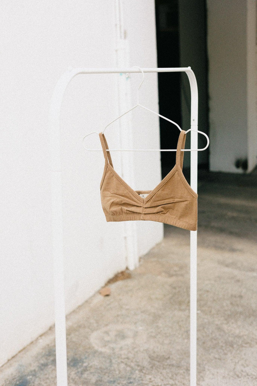 The summer bra was designed with a pinch-front and an elastic band at the bottom for chest support and for fit versatility. That is why this piece will accommodate a variety of cup sizes. All tops are made in an atelier in Barcelona using fair trade materials.