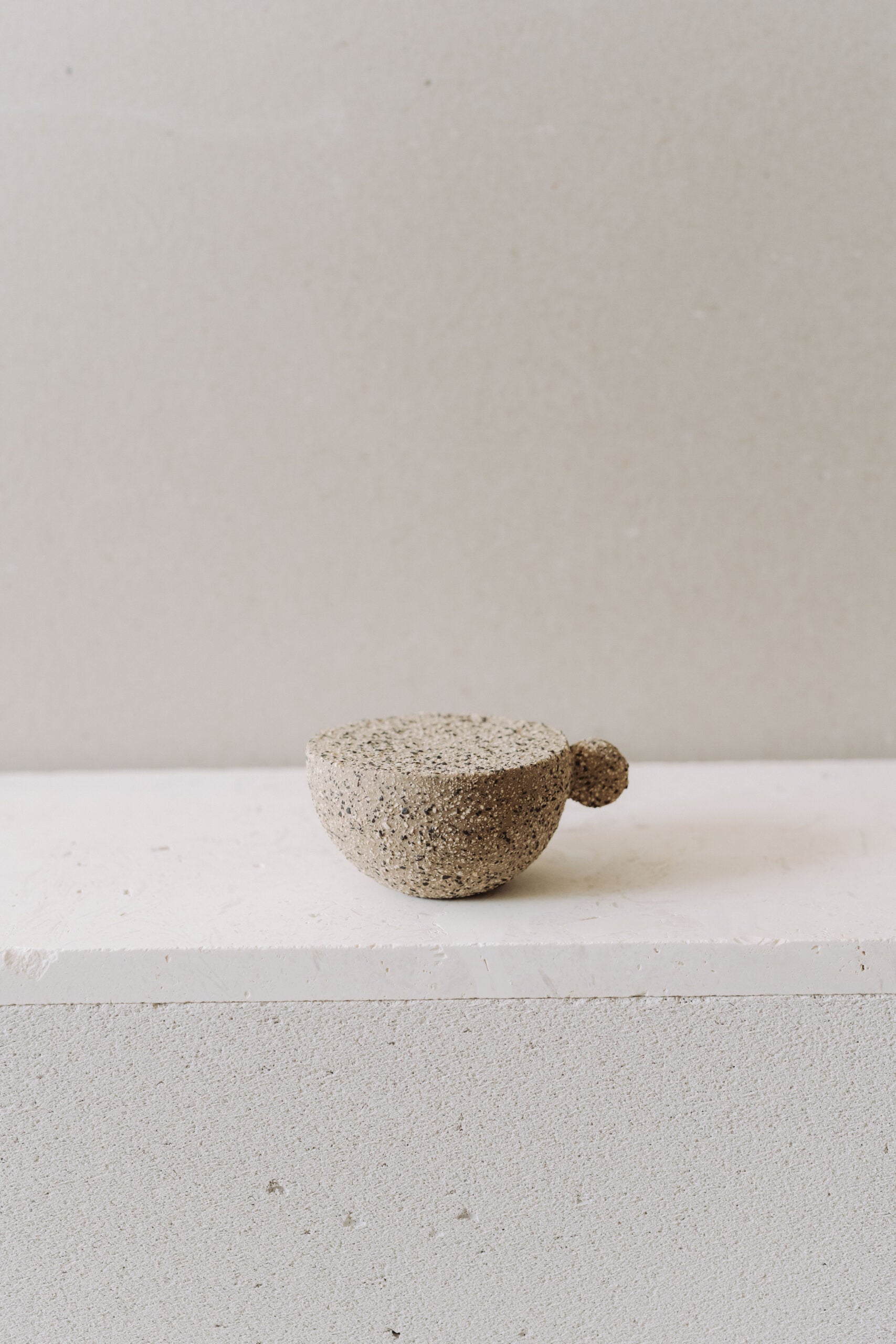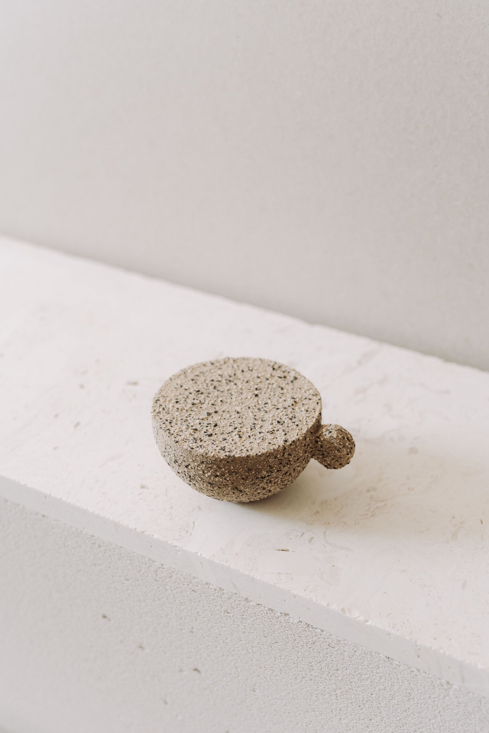 The Cup, inspired by the works of Constantin Brâncuși, is a versatile creation under the Origen collection (you can read more about Brancusi here). It serves both as a refined decorative object and as an elegant vessel for presenting amuse-bouche in fine dining. Each piece, meticulously handcrafted from terrazzo stoneware, carries its own distinct character and a tactile authenticity. I personally envisioned it as an out-of-the-ordinary candle holder from fall to spring, and as a cool sculpture on your table in the summer that sometimes dares to carry some white sage.