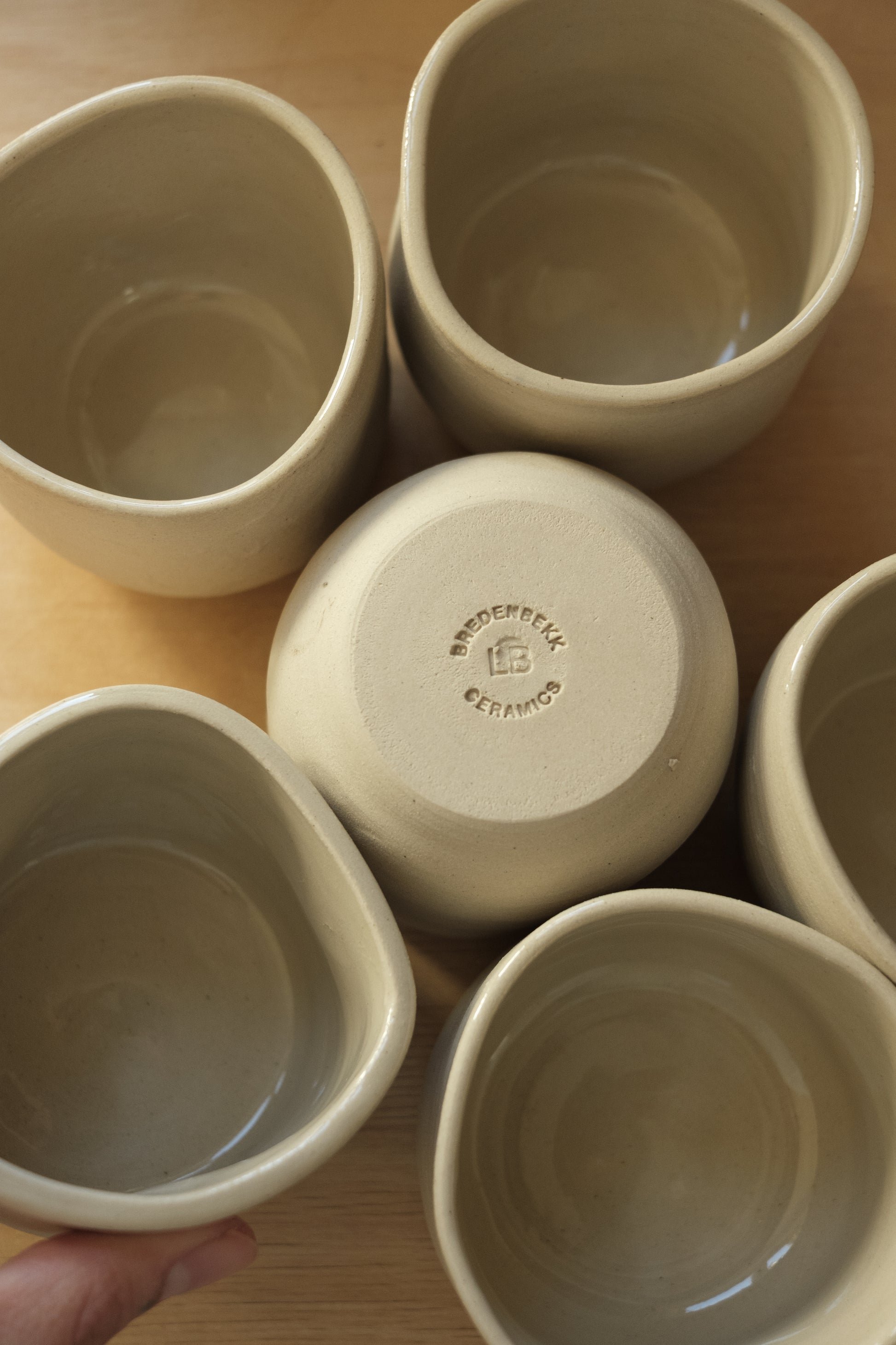 Linda Bredenbekk is a self-taught ceramic artist who lives in Jæren, Norway. She shared with us that she finds magic in enjoying a cup of coffee sipped from a unique, handmade cup. Linda values the individuality of each of these handmade products, whom they speak to and where they go. Linda loves animals, music, art and food and she appreciates minimalism -- a theme also present in the clean lines of her work. She prefers deep conversations over small talk and she notices the ambiance more than the physical things. It is her intuition that has guided her onto this path of working with clay, and the itch in her fingers to be touching, reshaping it. Isn't that beautiful?