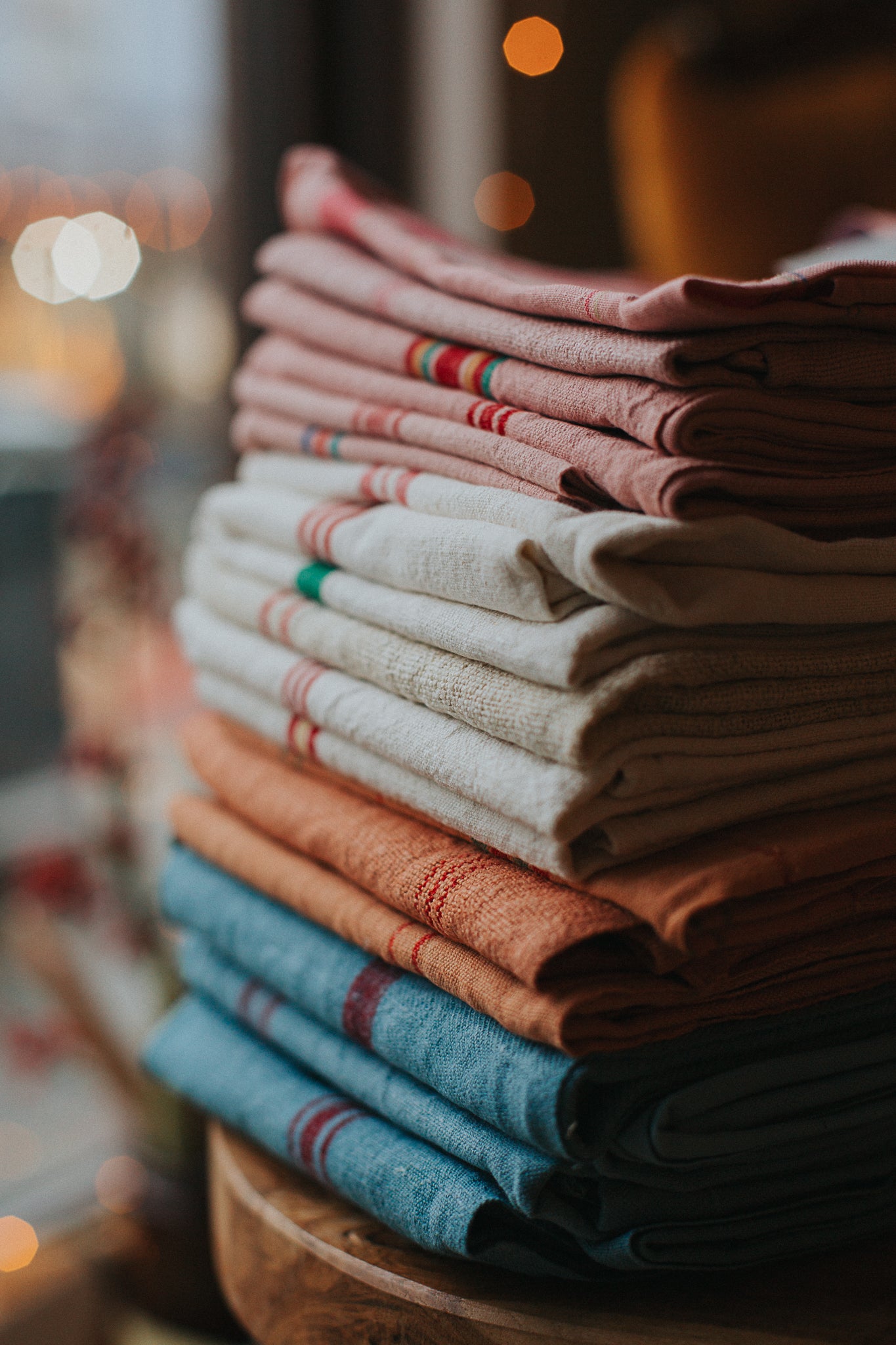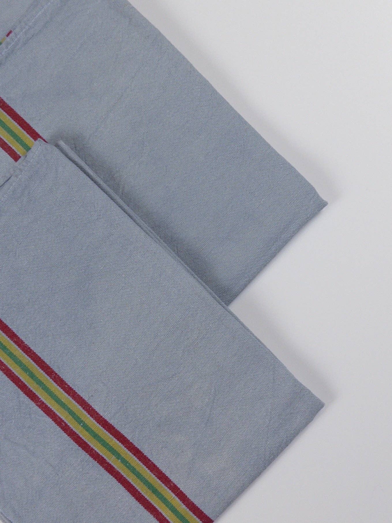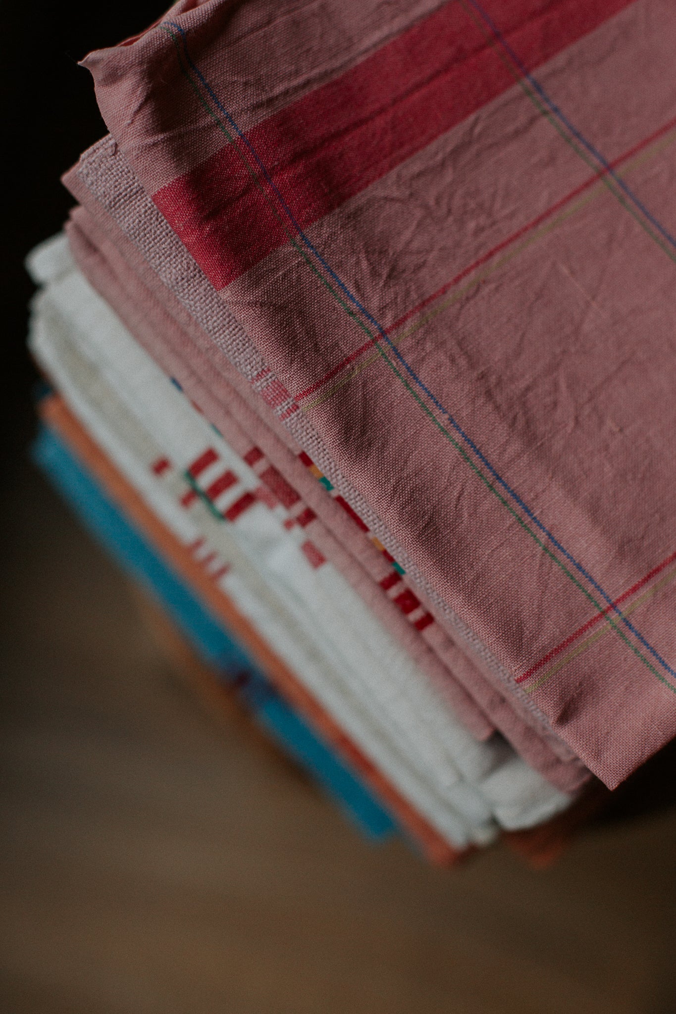 These antique tea towels are made of linen, cotton, hemp or a mix of these. They are collected, repaired, cleaned and sometimes dyed by the Maison Masarin team in their workshop in Lyon. Each piece is unique or in small series. The dyes are handmade and there may be nuance variations compared to the color in the image. Vintage tea towels are pieces that tell a story. Some slight defects may appear in the weave or in the color. These signs of age give them authentic charm and are a testament to know-how of generations.