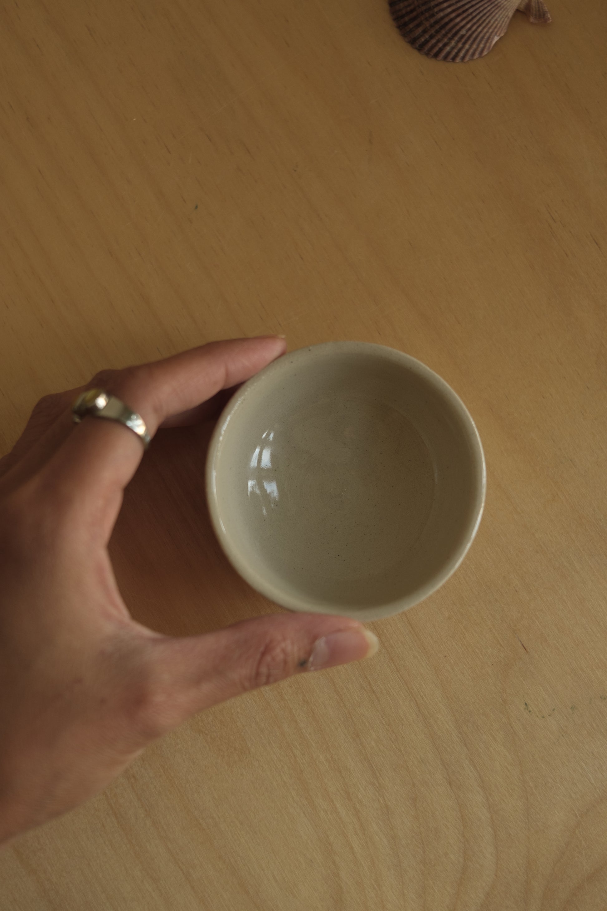 This is a mini cup that opens oh so beautifully! It would be perfect for you for when you're sipping hojicha or a delicate black tea. If it is too small for a drinking vessel, than give it credit for its beauty as a trinket dish or as a tiny serving bowl on your festive table each evening :) (yes, every evening can become a celebration!).